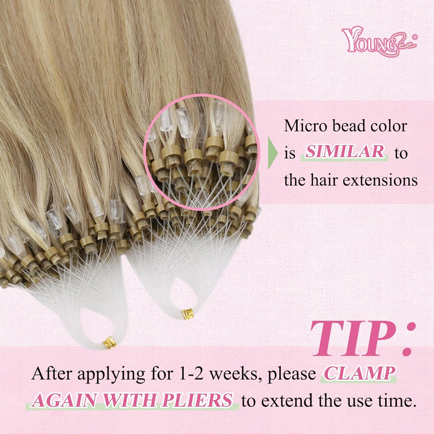 - 【YoungSee ✿ Invisible】 Die Mikroperlen auf unseren Haarverlängerungen mit Mikroschleife sind sehr klein, wodurch das Haar nahtloser und natürlicher aussieht. Keine Hitze zum Tragen erforderlich, kein Klebstoff erforderlich, praktisch harmlos für