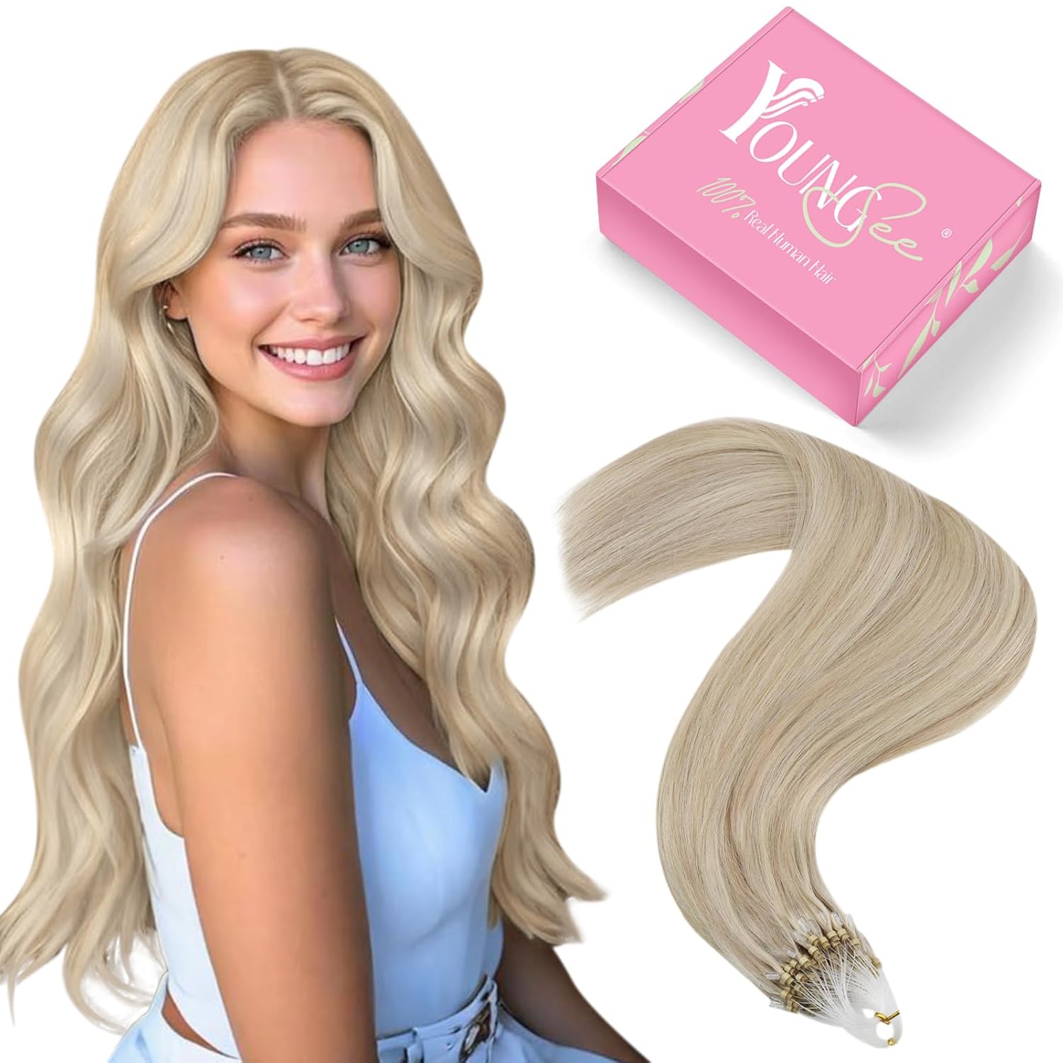 YoungSee Microring Extensions Blond Microring Extensions Echthaar 50 cm Microring Hair Extensions As