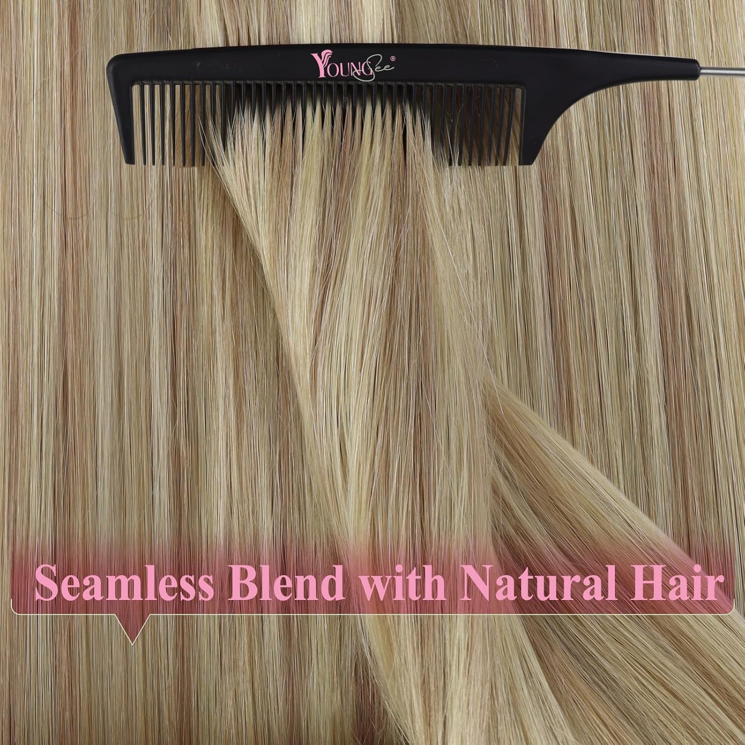 • 【YoungSee ❤ Haltbarkeit】extensions tape in blond verwenden importierten, verbesserten Weissleim, um Unsichtbarkeit zu gewährleisten und gleichzeitig die Festigkeit zu verbessern. Hypoallergen und sicher in der Anwendung. Nach dem Erhitzen (unter