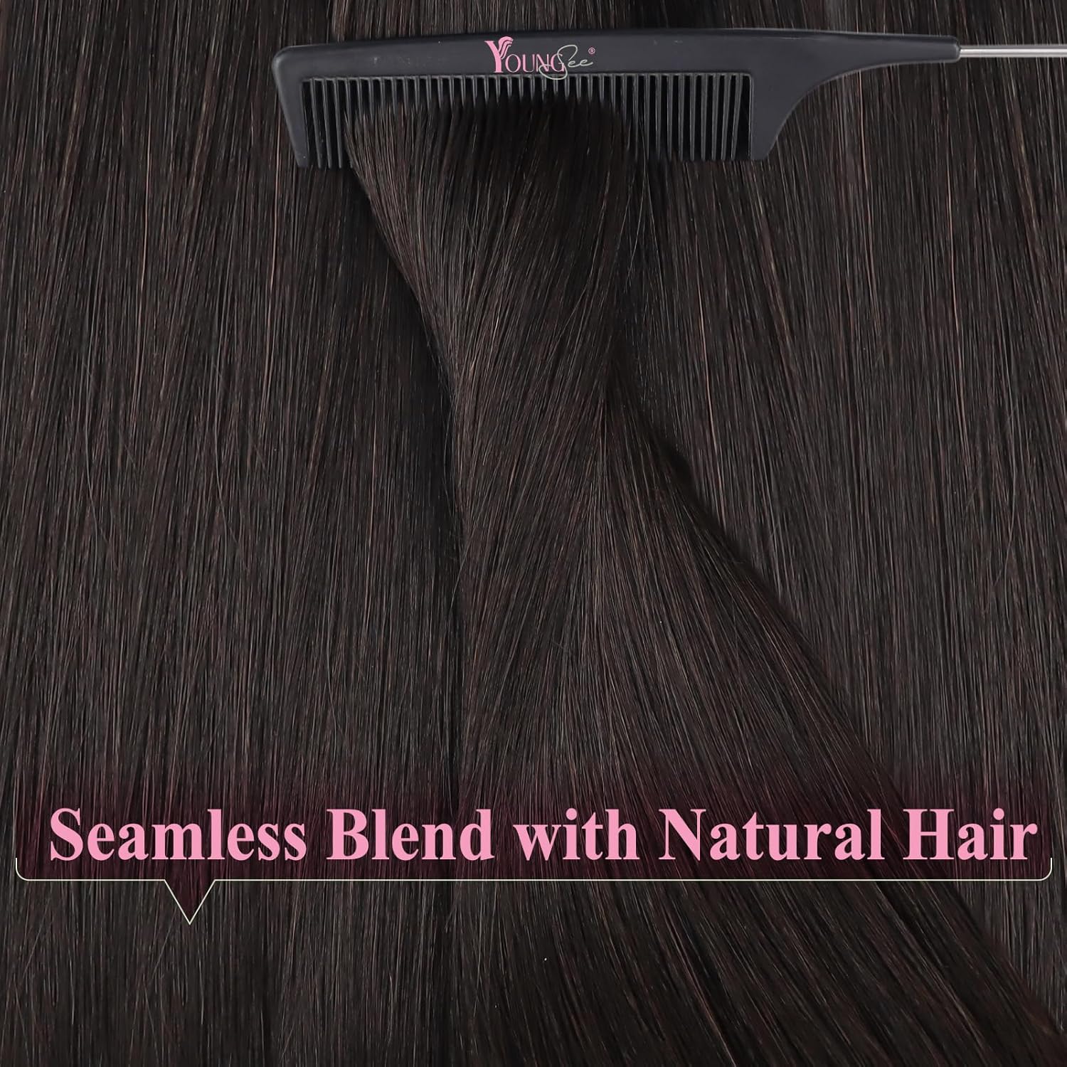 - 【YoungSee ❤ Haarpflege】 Es wird empfohlen, jede Woche ätherische Öle zur Tiefenpflege der tape haarverlängerung echthaar braun zu verwenden und die Haarspitzen regelmässig jeden Monat zu kürzen. Kämmen Sie Ihr Haar morgens und abends, kämmen