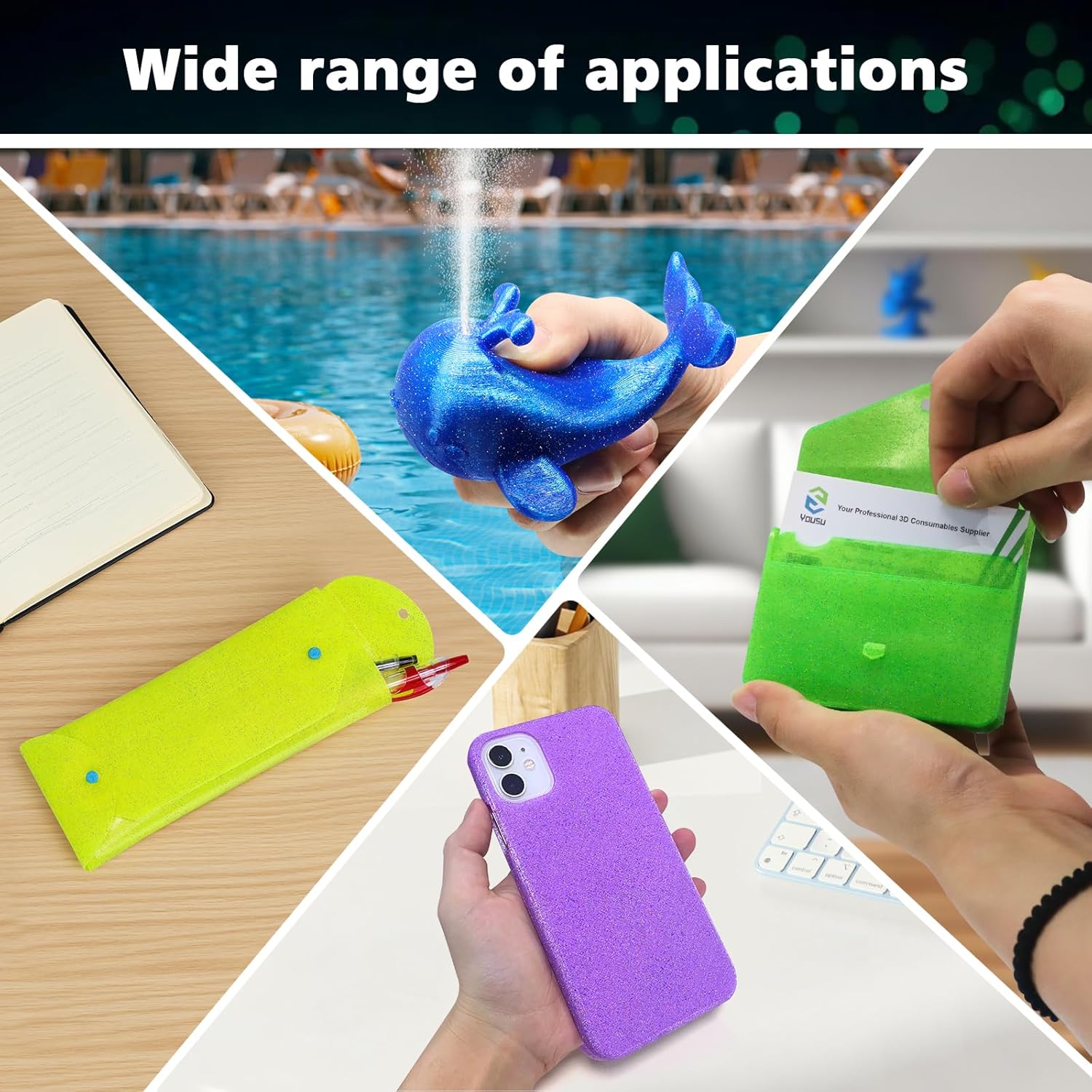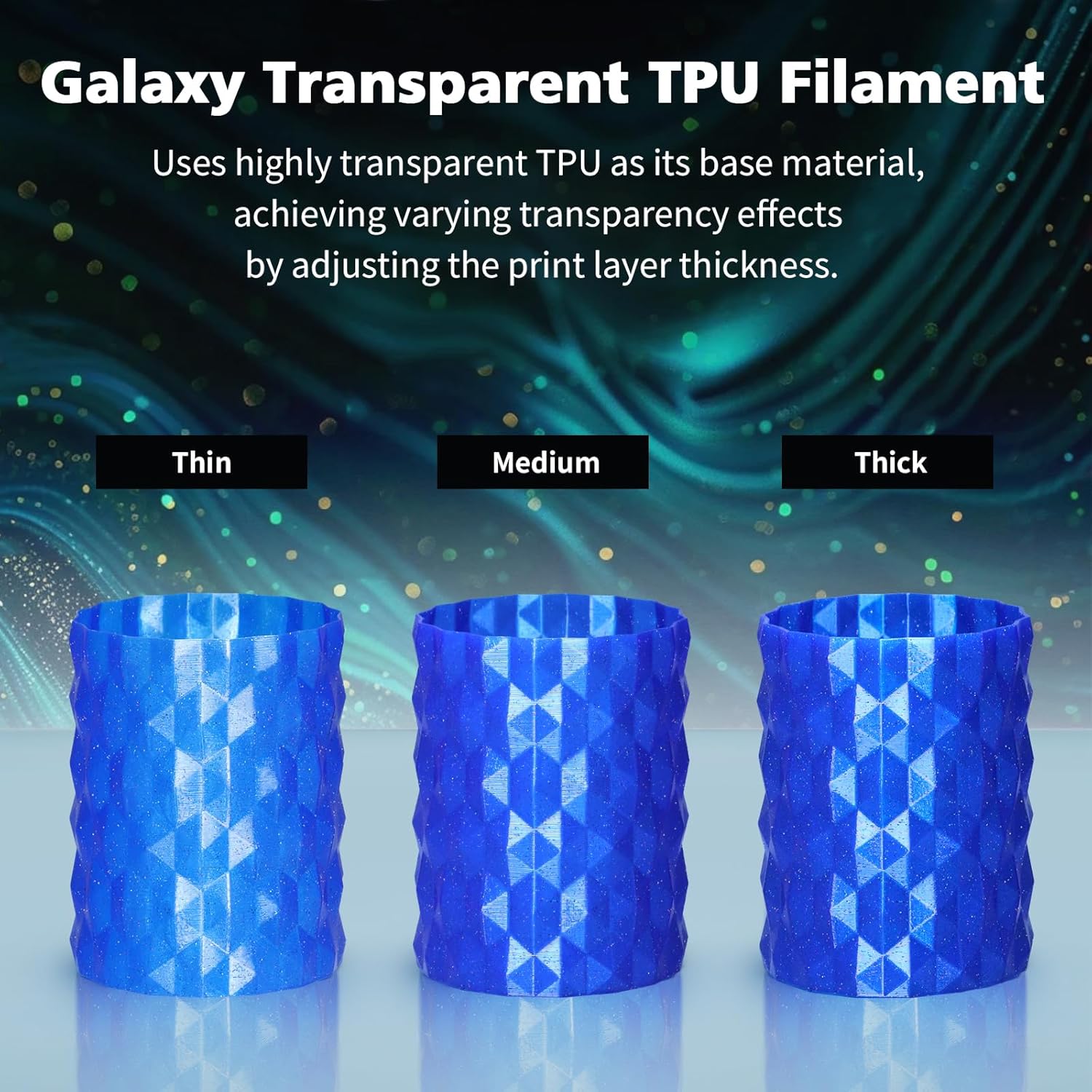 - YOUSU TPU-Filament 1,75 mm, transparentes Galaxy-TPU (Gelb, Grün, Blau, Lila)