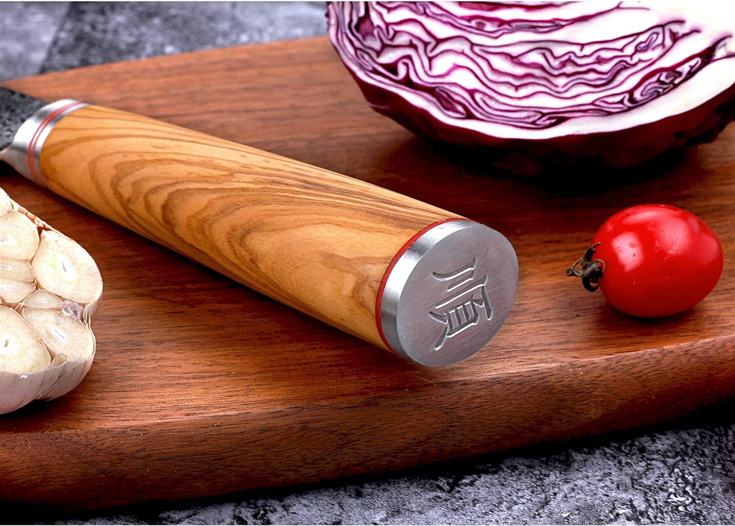 PRODUKTBESCHREIBUNGEN Kochmesser 25,5 cm (10 Zoll) Japanisches Hackmesser Damaststahl Super Sharp - Griff aus italienischem Olivenholz mit Lederscheide