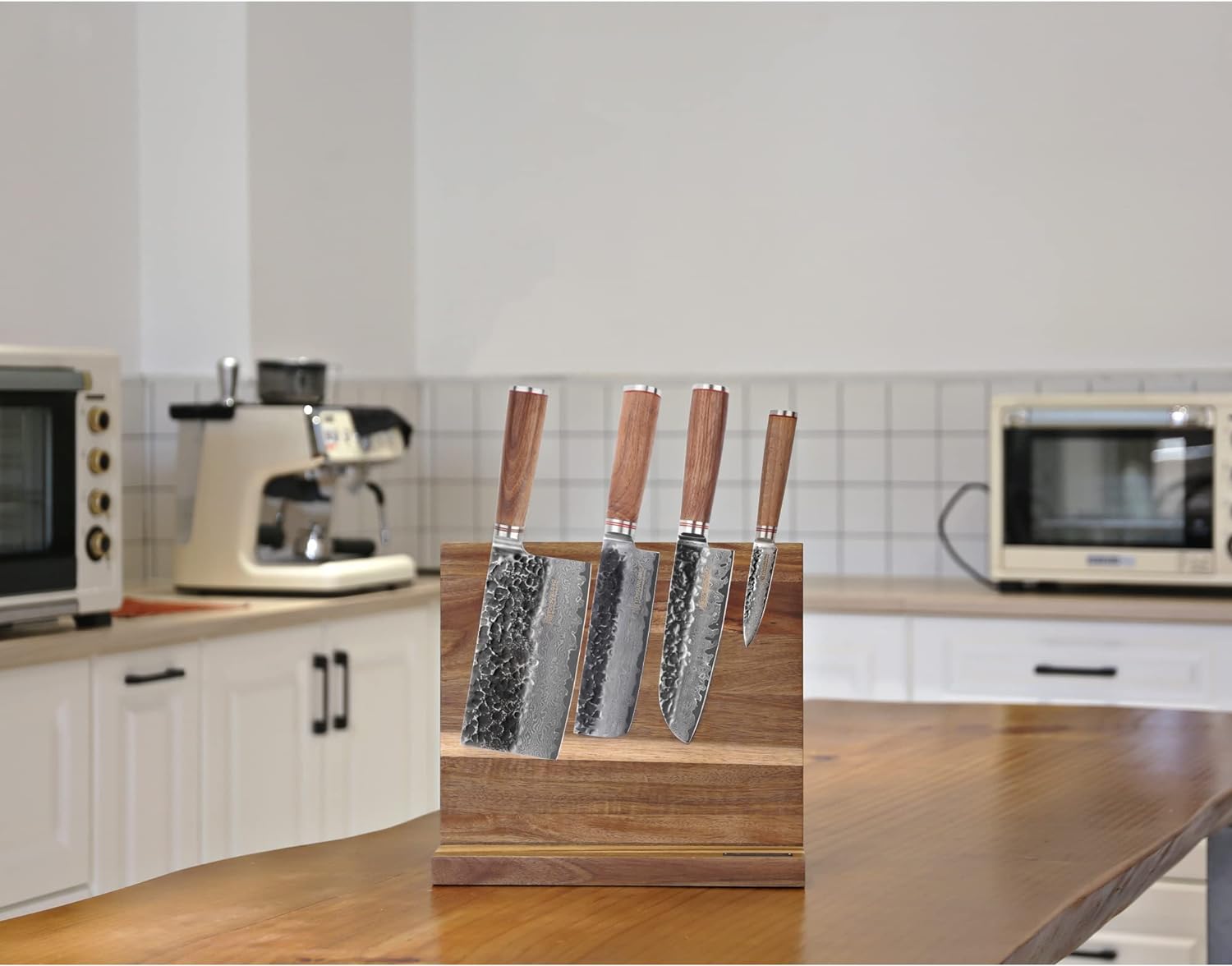 - Doppelseitiges magnetisches Design des Halters. Der Halter ist 32 cm breit und kann problemlos mehr Messer aufnehmen. Dadurch wird Platz auf der Küchentheke frei. (Hinweis: Nur für Eisenklingen aus Stahl, NICHT für Keramikmesser.) Flache Oberfläche