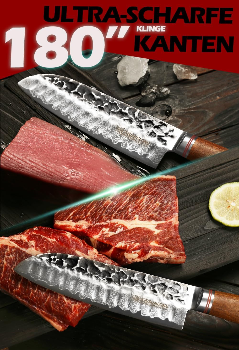 - 【Einzigartig und wunderschön】 Dieses Messer verfügt über eine einzigartige und wunderschöne Tsuchime-Damastklinge („Hammered Pattern“). Sie ist mit einem handgeschärften und handgeschliffenen Klingen-Kern aus Damaskus-Edelstahl ausgestattet,