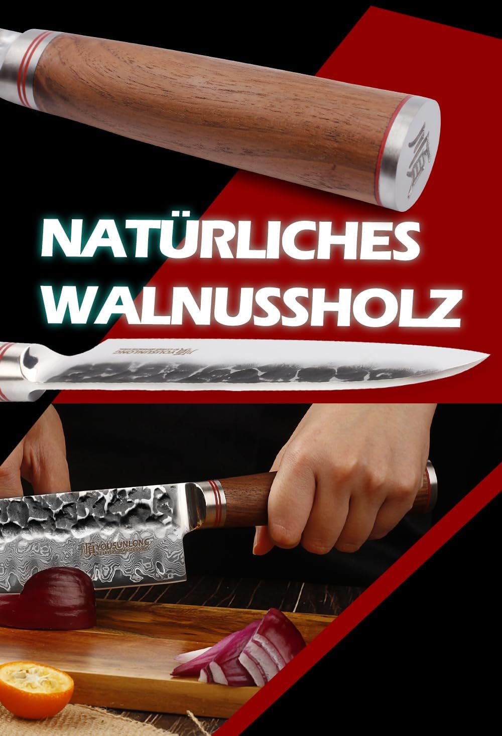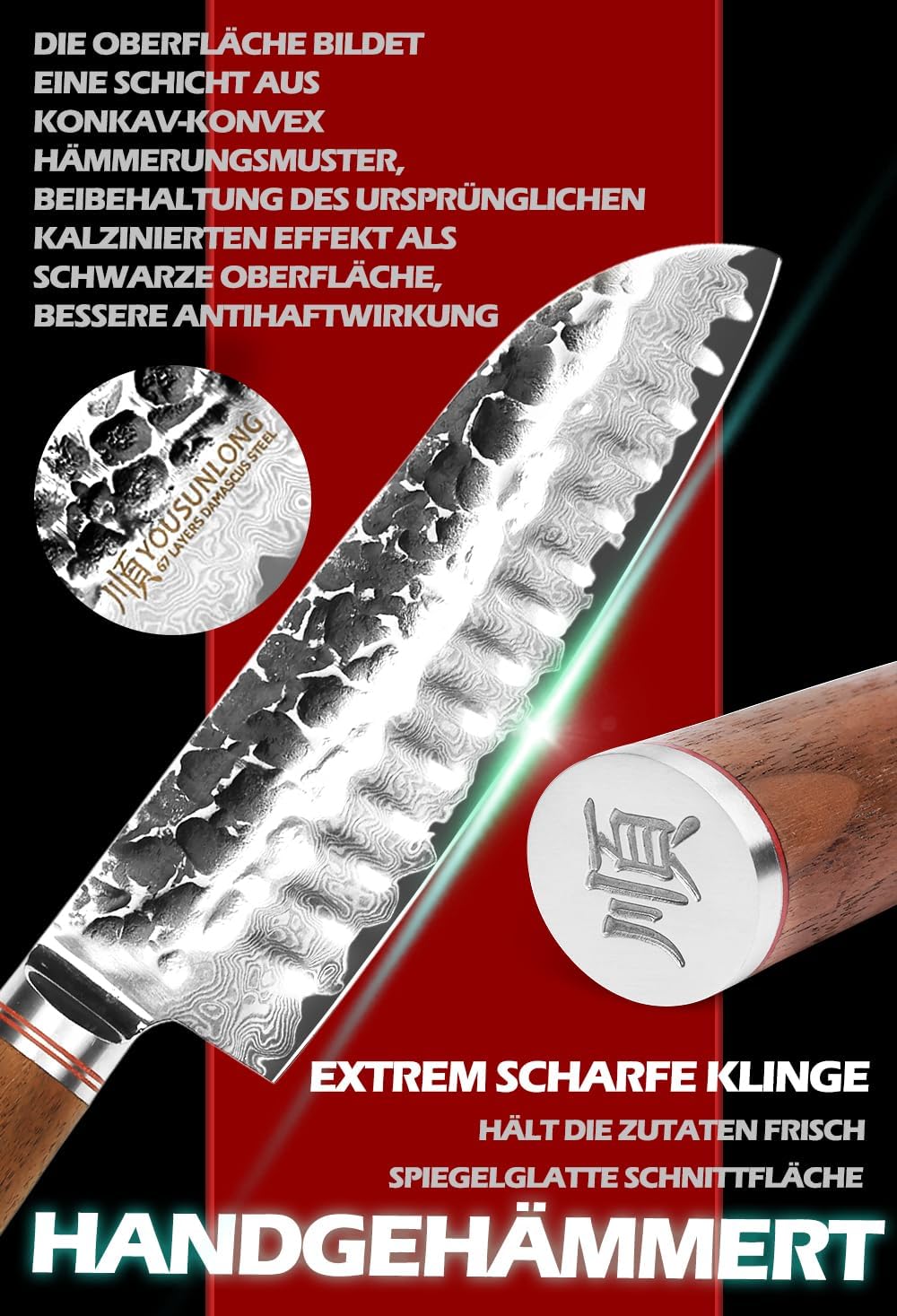 - 【Anti-Stick】 Knife Oberfläche konvexen Rumpf mit Anti-Stick-Effekt, Das professionelle Kochmesser hat eine scharfe Klinge und eine 15 ° Klinge. Es hat eine hohe Härte und Verschleissfestigkeit. Bei der Verwendung können Ihre linke und rechte Hand