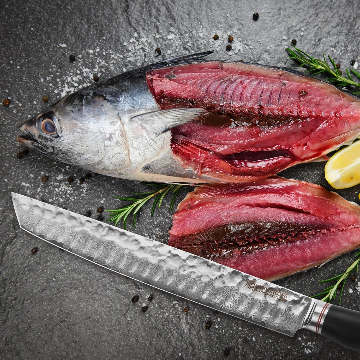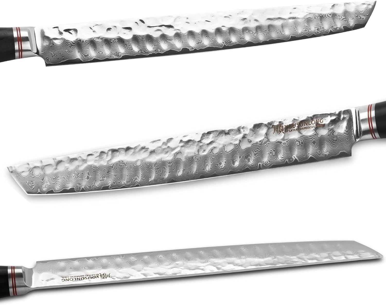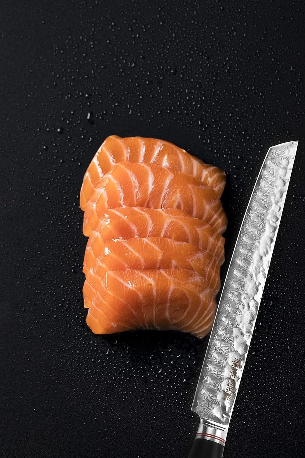 - 【Hohe Qualität und Schärfe】Ein hochwertiges Koch-Spezial-Schneidemesser aus japanischem 67-lagigem geschmiedetem High-Carbon-Stahlkern Damaststahl, HRC (Härte) 58-60, es hat eine hohe Härte und Verschleissfestigkeit. Die scharfen Klingen auf