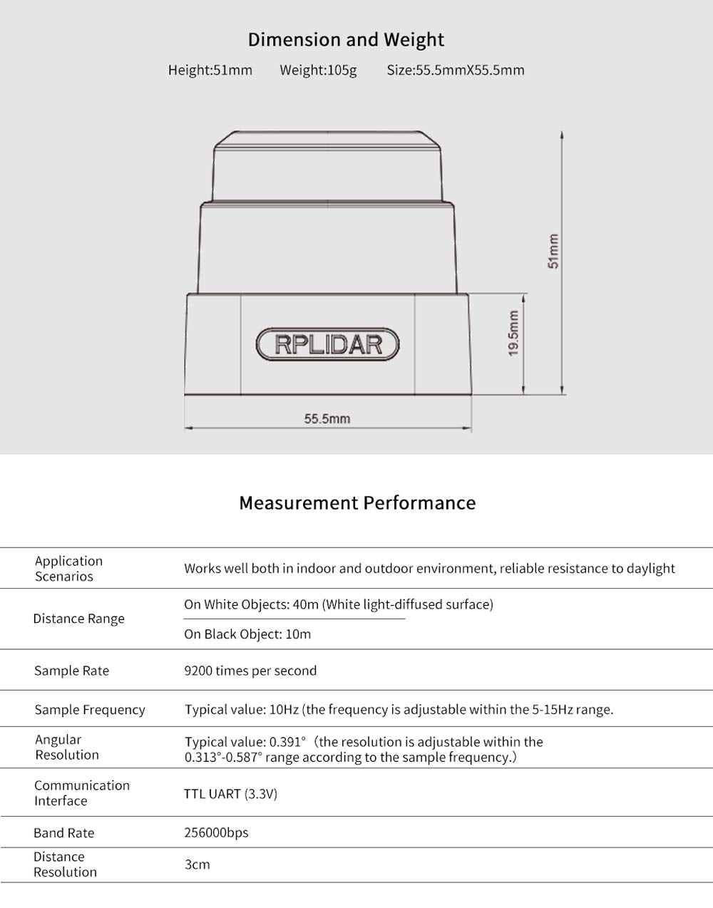 - Beständigkeit gegen starkes Tageslicht im Freien verfügbar , RPLIDAR S1 vermeidet starke Tageslichtstörungen und verfügt über eine stabile Reichweite und eine hochauflösende Kartierungsleistung im Freien.