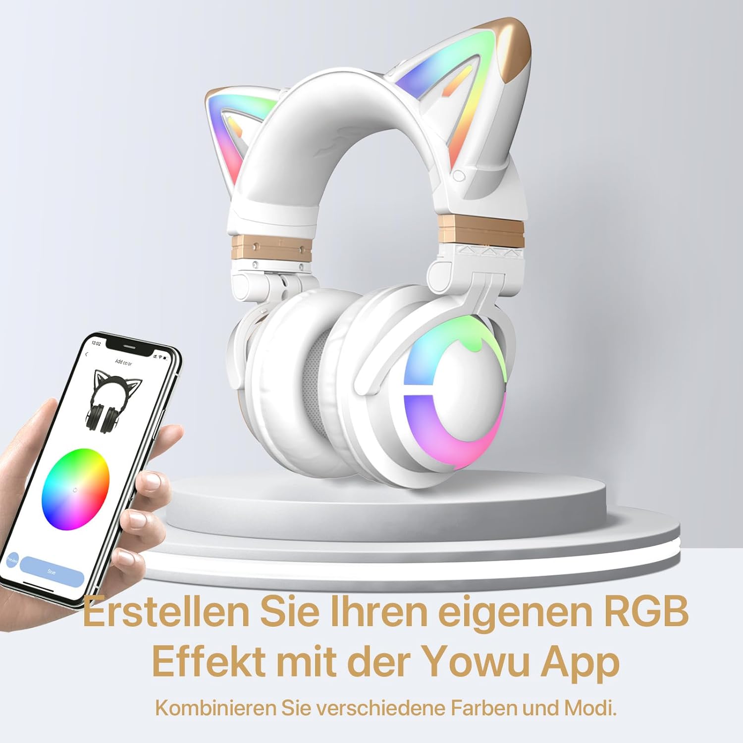 - 【App-Steuerung】 Das YOWU Kitty Headset hat seine einzigartige YOWU App, mit der Sie Millionen von Lichtfarben anpassen können, 4 verschiedene Lichteffekt-Modi und auch Soundeffekte für verschiedene Soundszenarien.