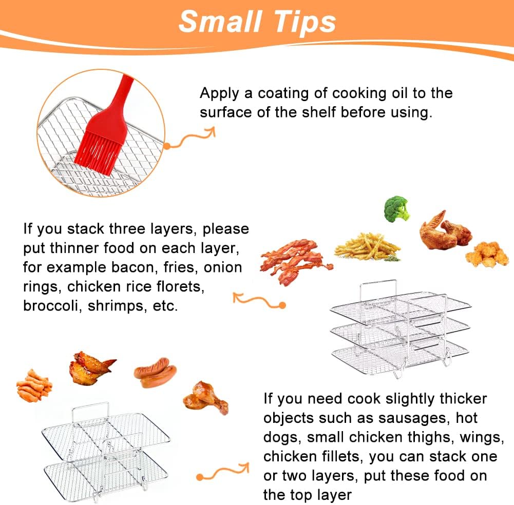 - Hochwertiges Material in Lebensmittelqualität: Air fryer Rack aus 304 lebensmittelechtem Edelstahl für eine lange Lebensdauer und spülmaschinenfest, keine Sorge über irgendwelche gefährlichen Chemikalien. Sie können jedes Mal mit Ihrer Familie