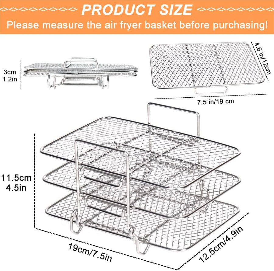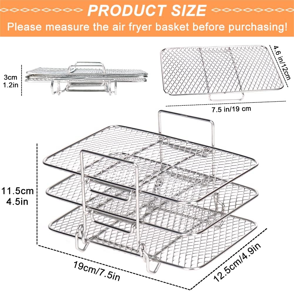 - Airfryer zubehör für Ninja Dual Heissluftfritteuse: Die Grösse der drei Schichten Luft Friteuse Rack ist 19cm * 12,5cm * 11,5cm. Speziell entwickelt für Ninja Foodi AF300EU Dual Air Fryer, auch geeignet für AF400EU, Tower 17088 und andere Dual Zone