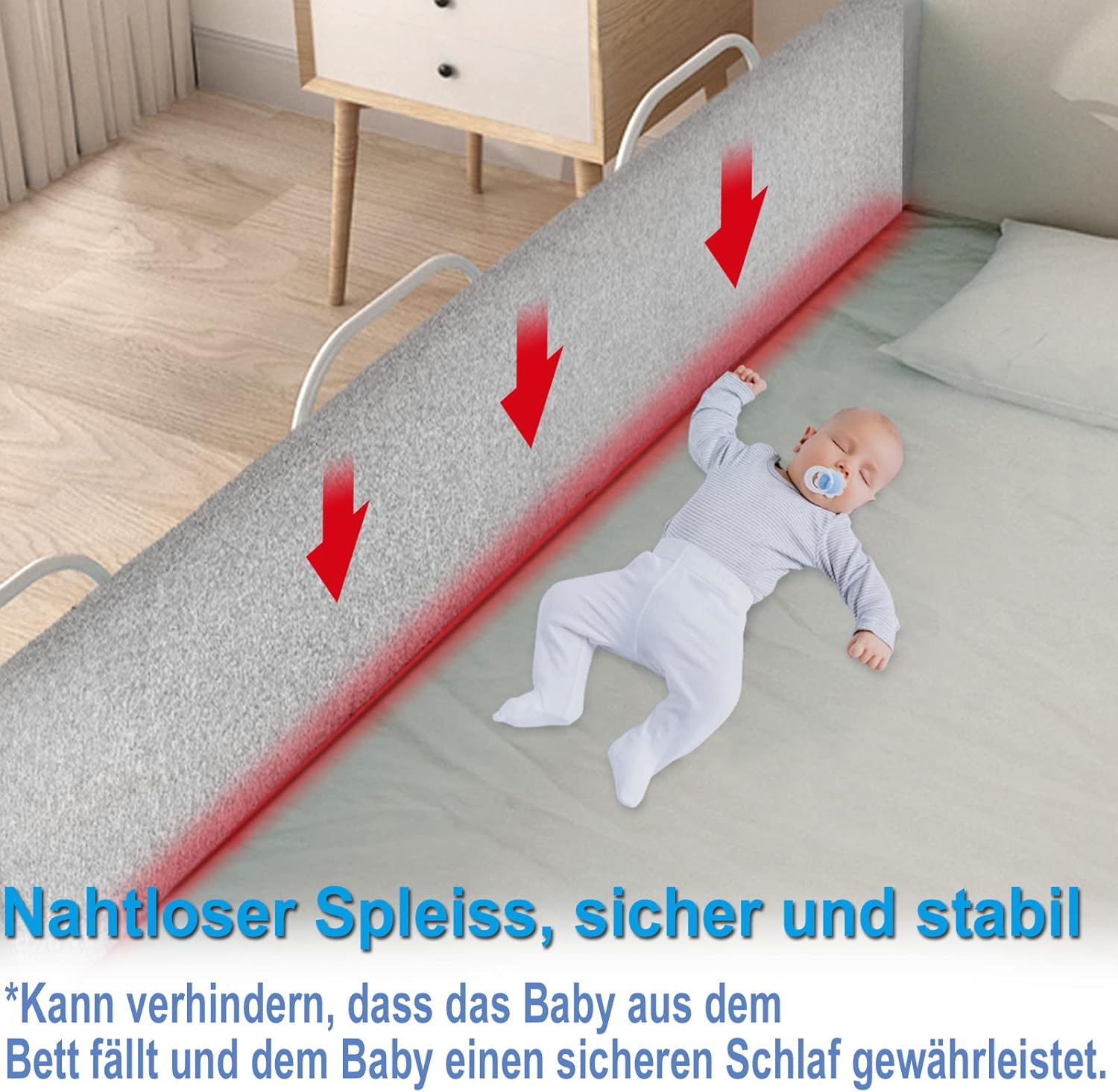- 😊【Stabile Konstruktion】 Hergestellt aus hochwertigem Stahlrahmen mit weicher, umweltfreundlicher EPE-Perlbaumwolle. Das Stahlrohr wird mit einer Schraube an der Bettkante befestigt und bietet eine starke Stabilität für die Sicherheit Ihres