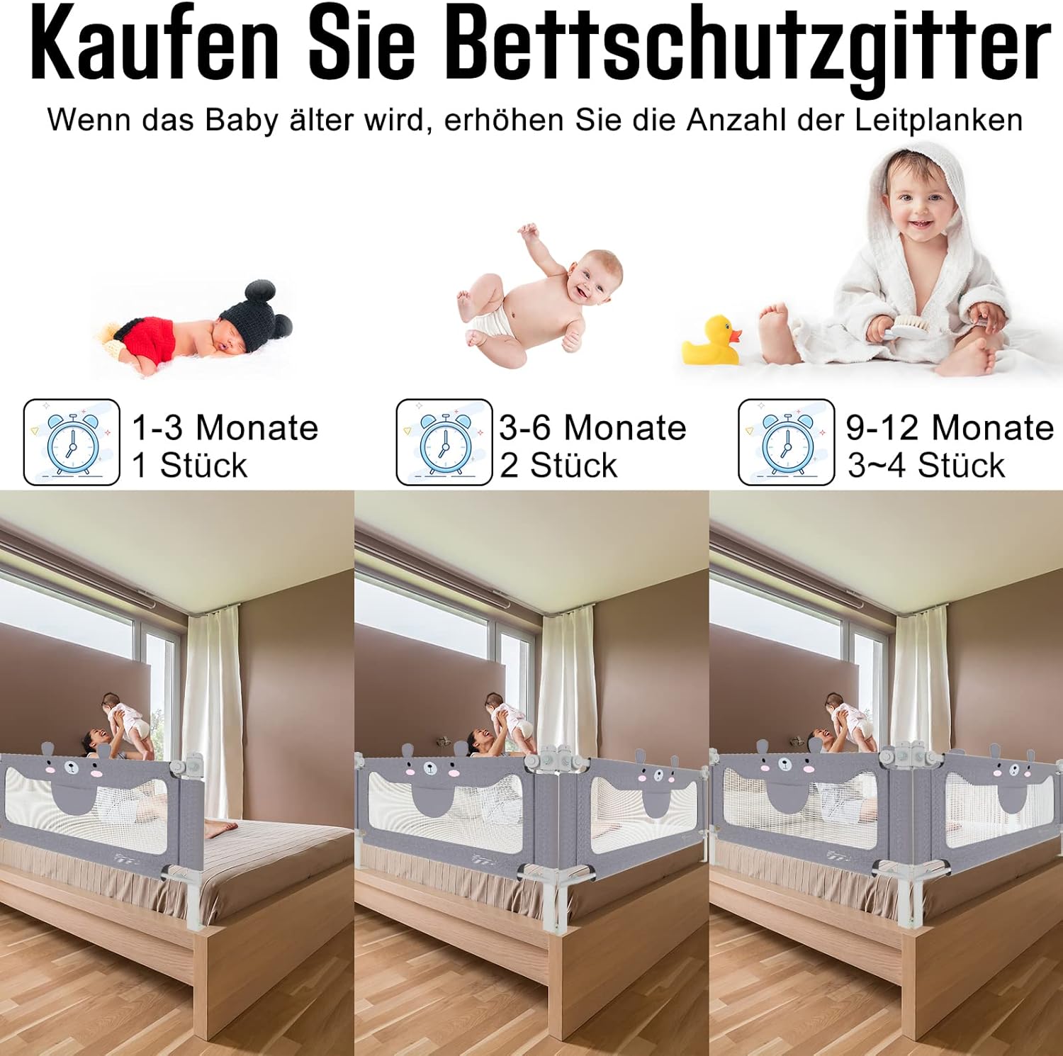 - 【90° nahtlose Passform Bettschutzgitte】Es kann effektiv verhindern, dass Kinder beim Rollen versehentlich vom Bett fallen, und gleichzeitig verhindern, dass Kinder oder Spielzeug in die Lücke fallen und stecken bleiben.