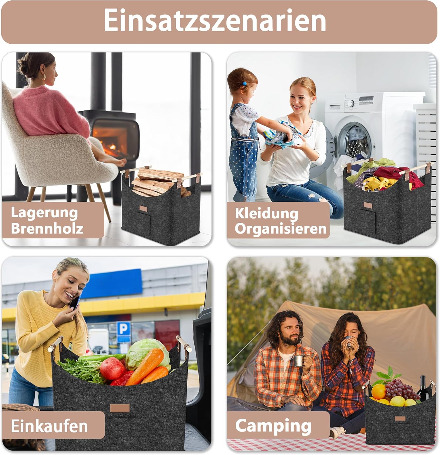 - Vielseitig verwendbar: Der Holzkorb eignet sich nicht nur für Kaminholz, sondern auch als Einkaufstasche oder Spielzeugkorb. Eine umweltfreundliche und praktische Wahl für den Alltag