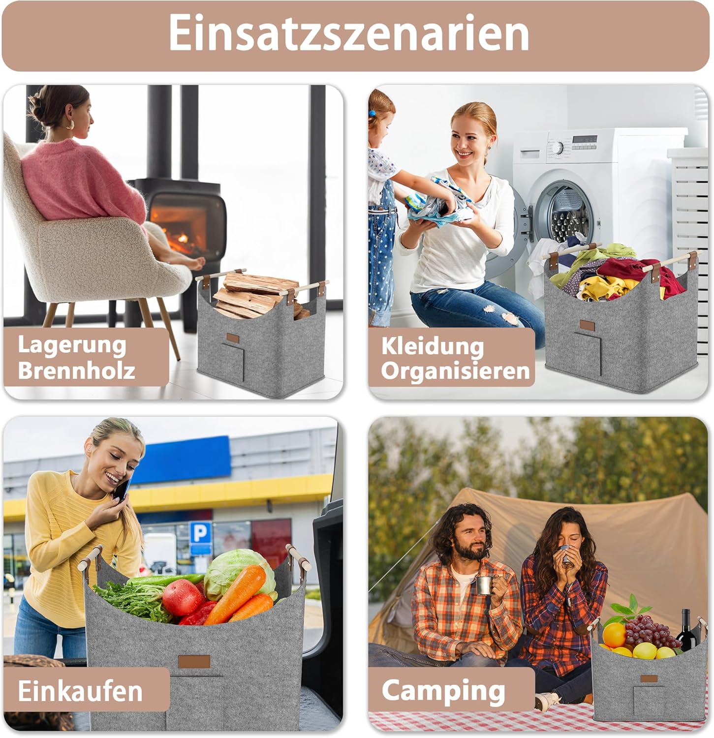 - Vielseitig verwendbar: Der Holzkorb eignet sich nicht nur für Kaminholz, sondern auch als Einkaufstasche oder Spielzeugkorb. Eine umweltfreundliche und praktische Wahl für den Alltag