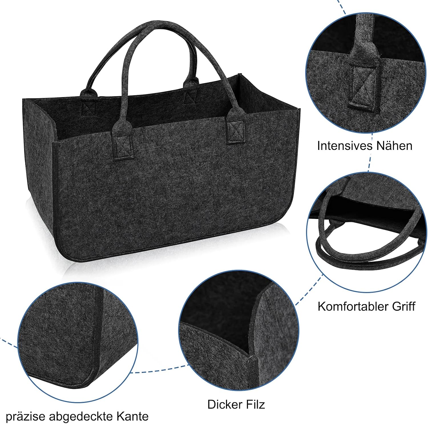 • 👜【Mit Griff】Die Filztasche hat einen stabilen Griff, um Ofenholz zum Kamin zu bringen und entspannt zu lagern, ist dieser widerstandsfähige Kaminholzkorb aus Filz eine gute Wahl.