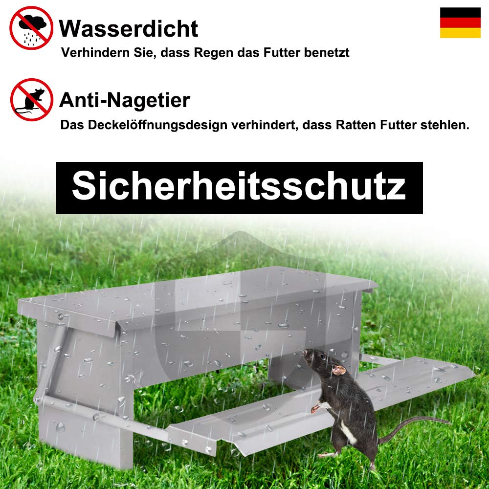 - 🐥【Wasserdicht】: Spart wertvolles Futter vor Regen,Spart Futterkosten, kein verschwendetes oder gestohlenes Futter mehr. Diese Versiegelbarkeit reduziert auch Verunreinigungen, die durch schlechtes Wetter verursacht werden, einschliesslich