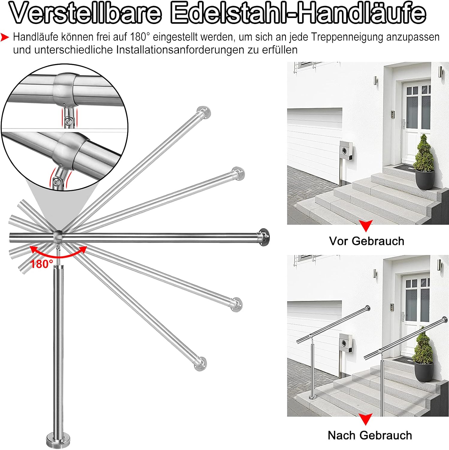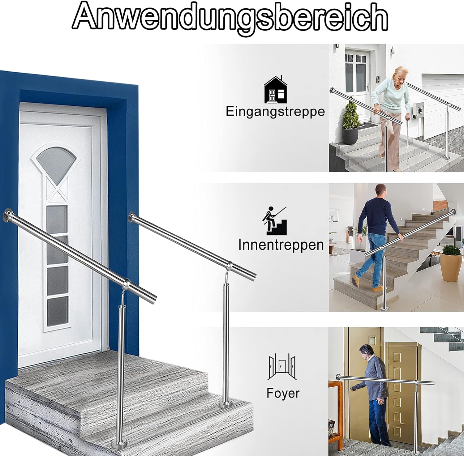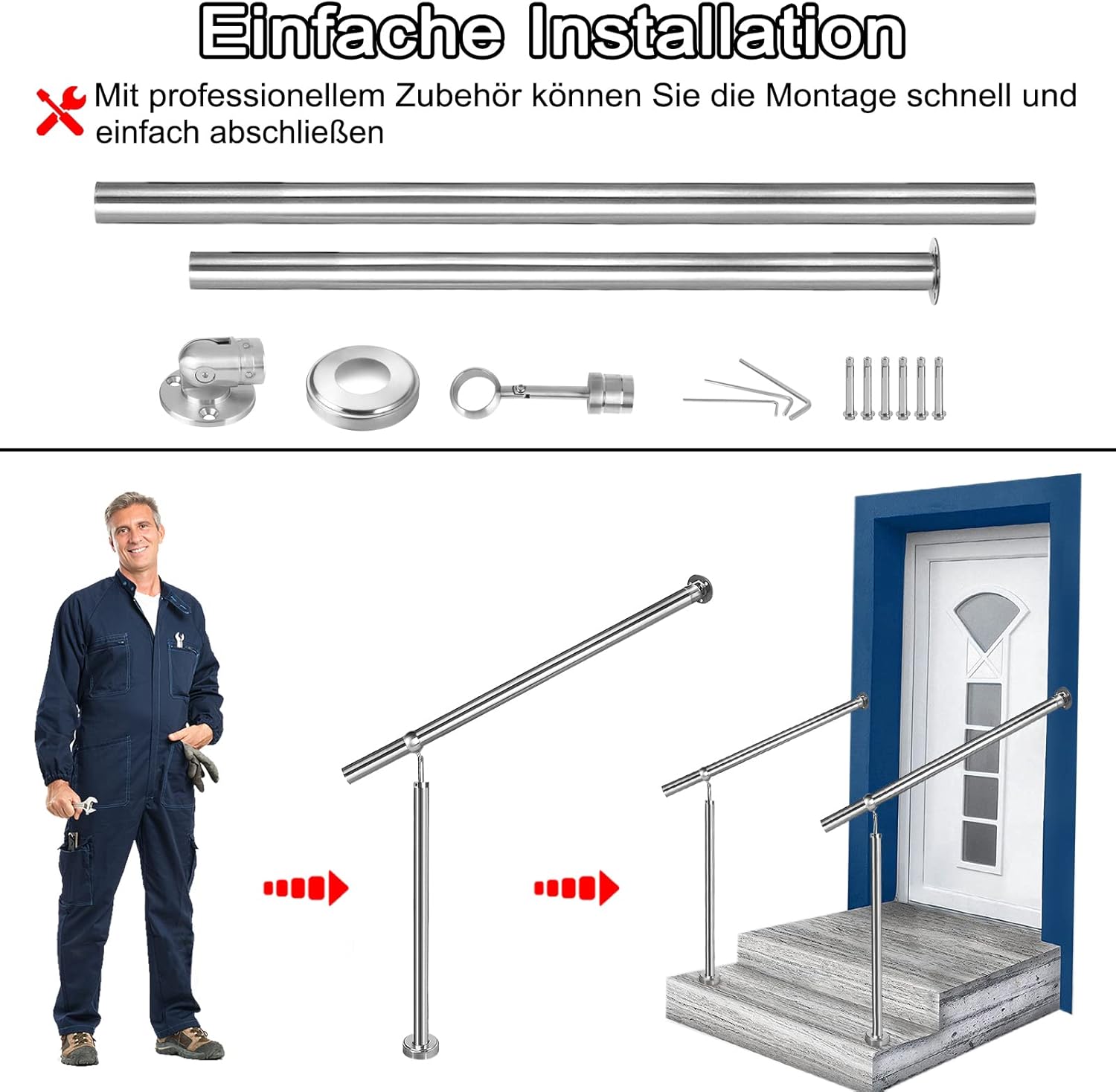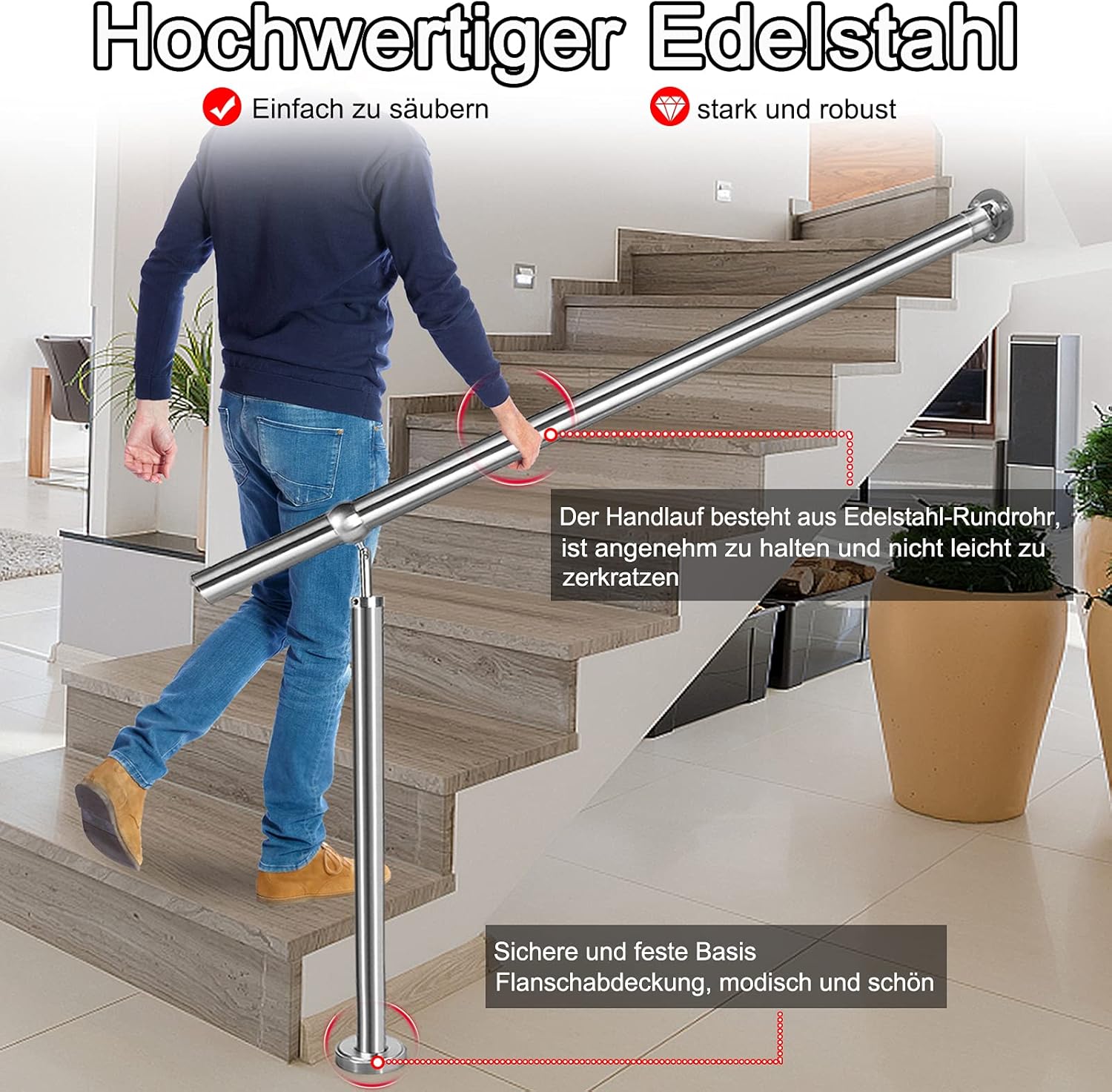 - 🔧【Einfache Montage und säubern】Geländer aus Edelstahl, inklusive Wandhalterungen, Befestigungsmaterial und stabilen Metalldübeln, Schrauben anziehen und Sie können den Handlauf sicher montieren.Handläufe sind leicht zu pflegen und zu