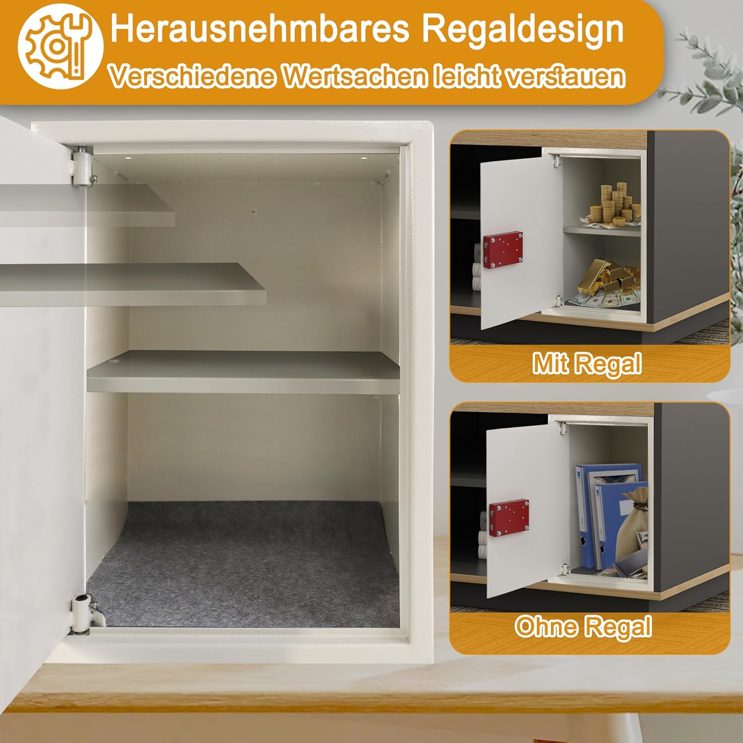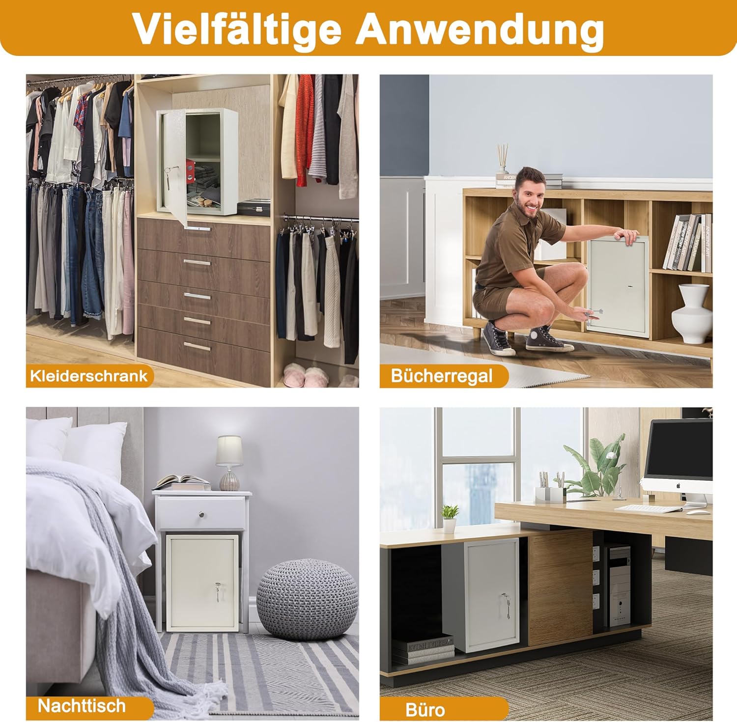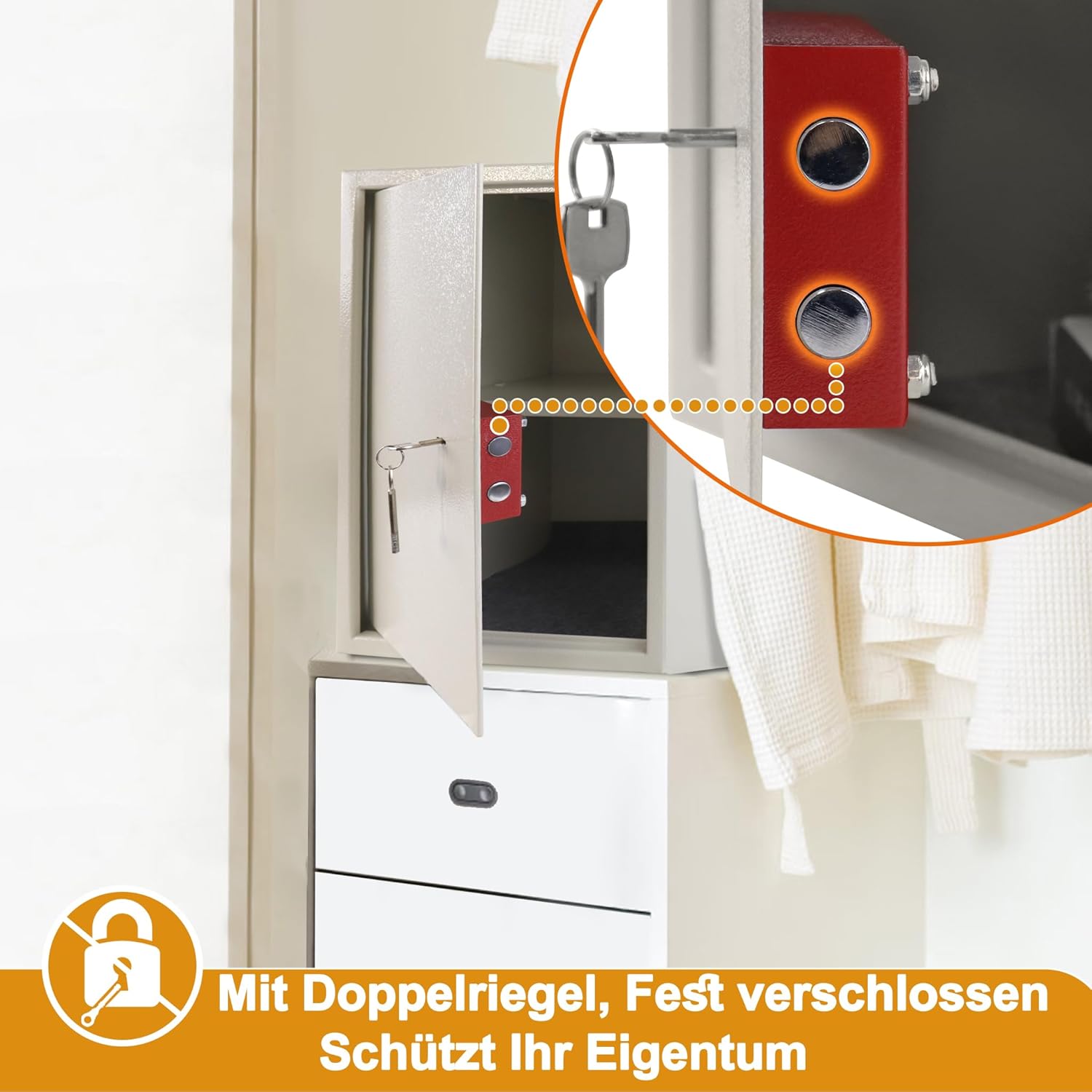 - 🗝️Möbeltresor mit mechanischem Schloss: Hochwertiges Doppelschloss mit zwei Schlüsseln. Verhindert, dass der Schlüssel beim Öffnen des Tresors herausgezogen wird. Egal, ob zu Hause oder im Büro, Schmuck, Dokumente und wertvolle Gegenstände