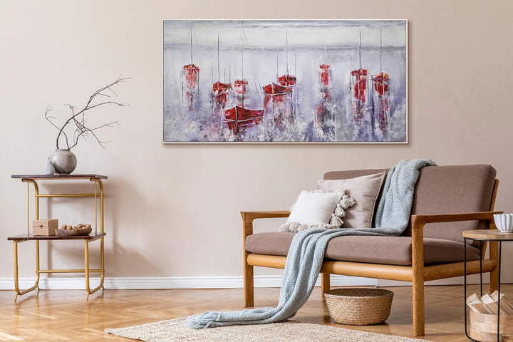 YS-Art Abstrakt Acryl Gemälde auf Leinwand handgemalt Stiller Hafen Wandbilder Wohnzimmer moderne Se