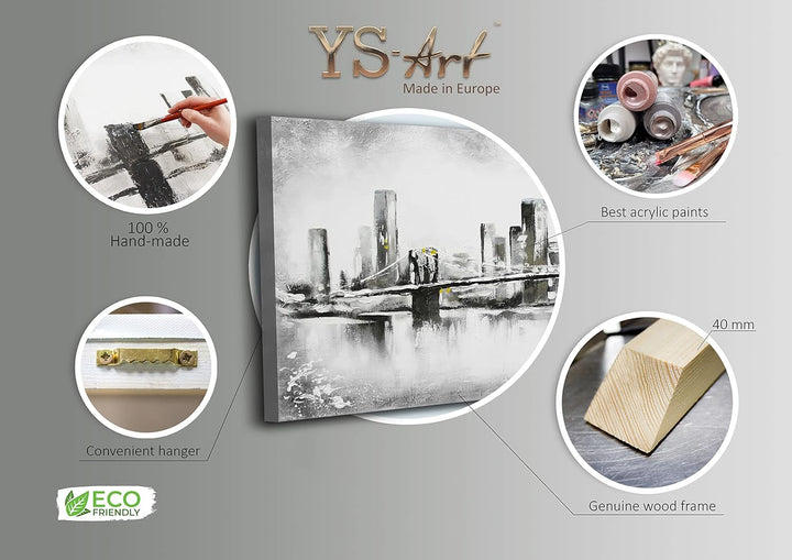 - Ein Gemälde mit einem Stadtbild ergänzt perfekt das moderne Interieur eines Wohn- oder Arbeitsraums. Historische Stätten, moderne Architektur und der Reichtum einer Grossstadt – davon liess sich die Künstlerin bei der Gestaltung dieses handgemalten