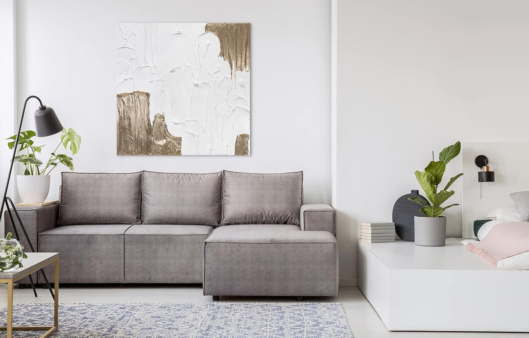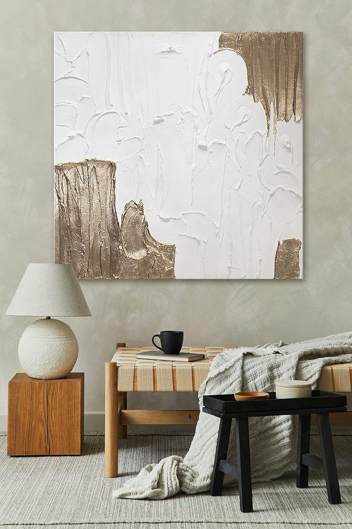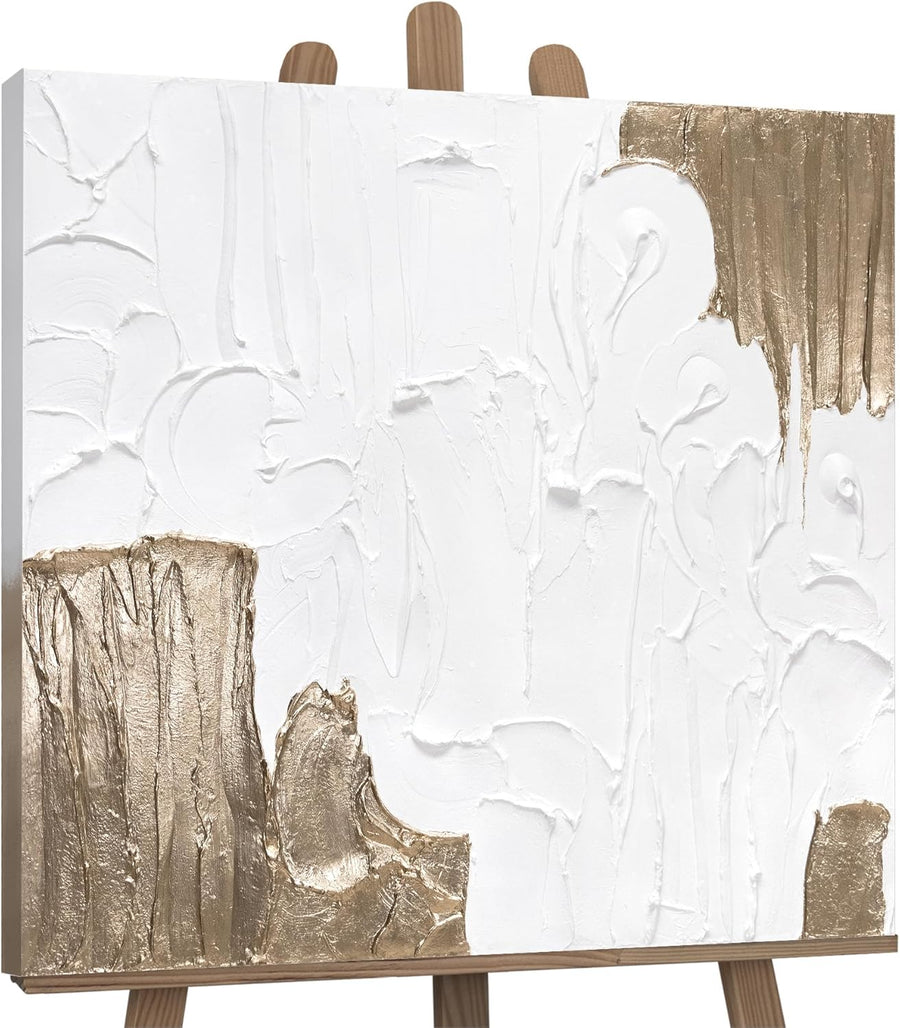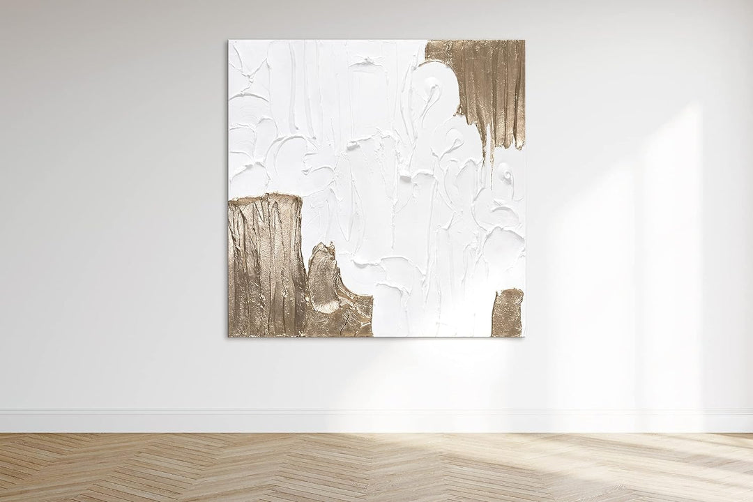 - Acrylgemälde „Lebensfroh II“ der exklusiven Serie Trend in der Grösse 100 × 100 cm. In Weiss mit Blattgold verziert. Jedes Gemälde wird vom Künstler signiert und ein Echtheitszertifikat liegt bei.