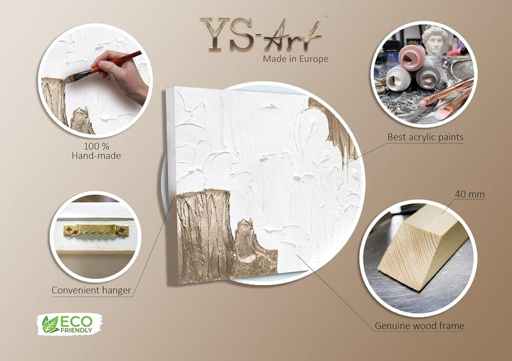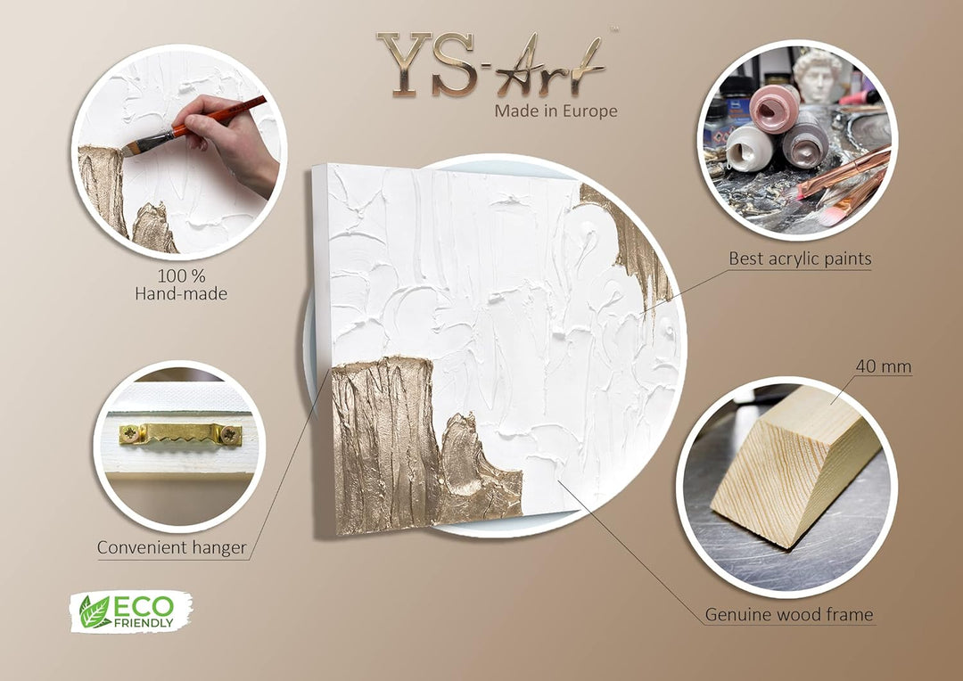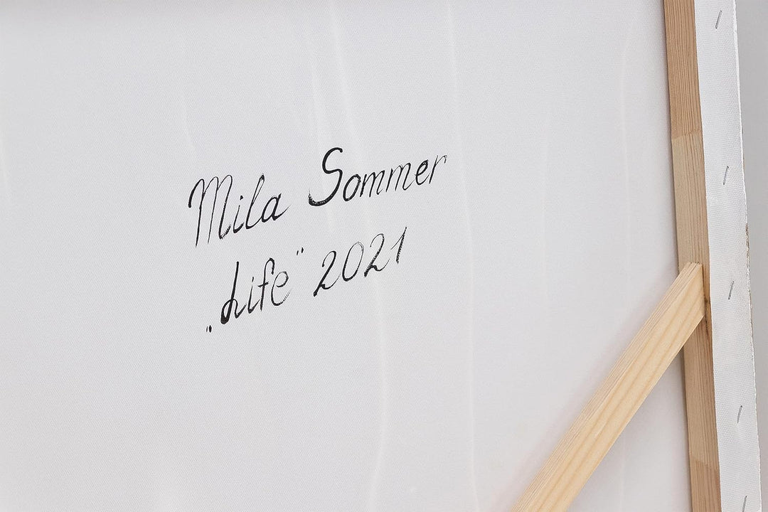 - Alle Komponenten werden komplett von Hand gefertigt. Vom Spannen der Leinwand auf den Keilrahmen bis hin zum Malen und dem sicheren Verpacken des Gemäldes.