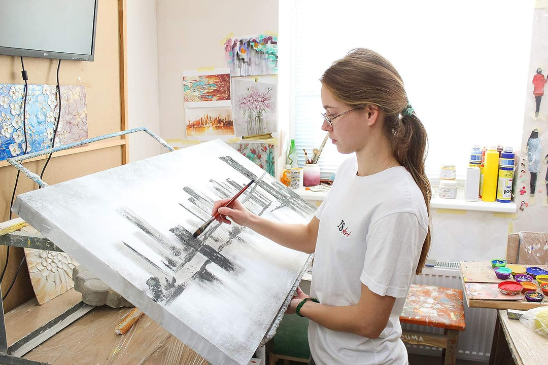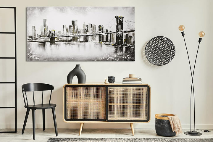 - Ein Gemälde mit einem Stadtbild ergänzt perfekt das moderne Interieur eines Wohn- oder Arbeitsraums. Historische Stätten, moderne Architektur und der Reichtum einer Grossstadt – davon liess sich die Künstlerin bei der Gestaltung dieses handgemalten