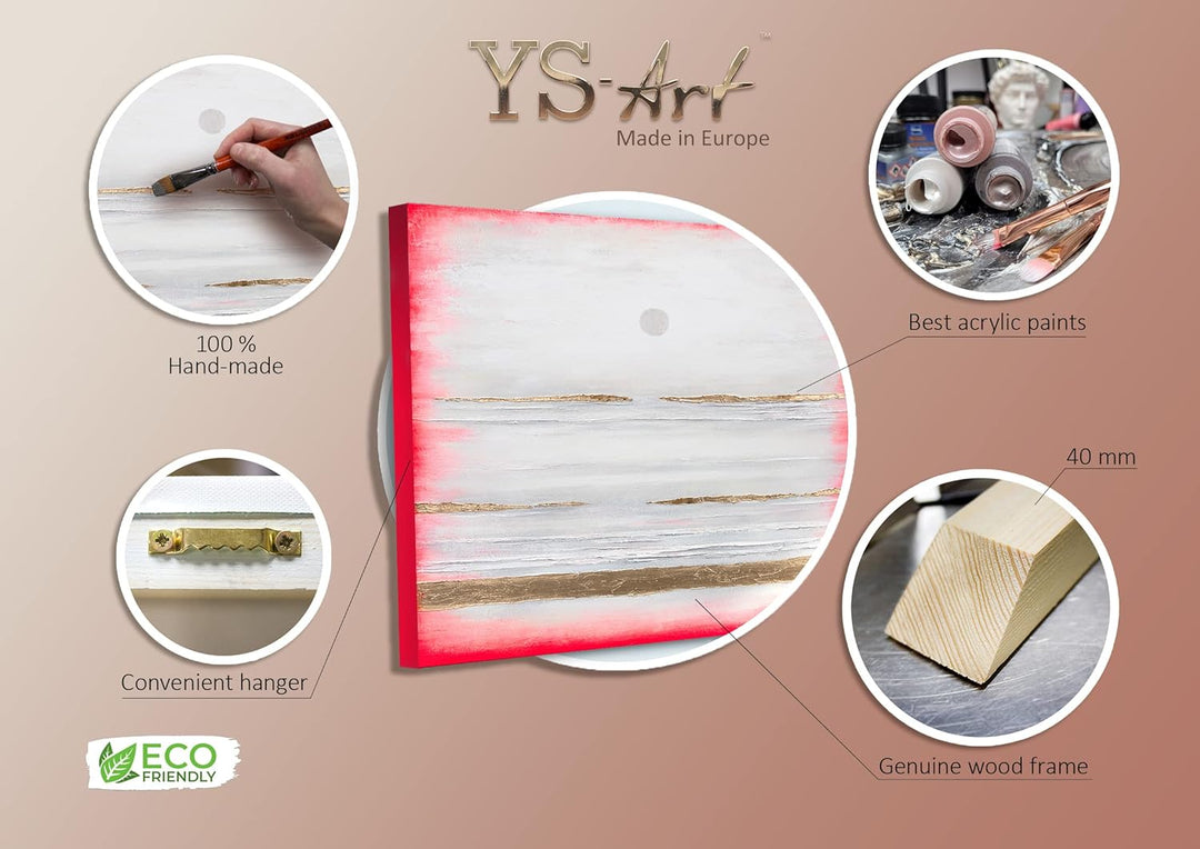 - Für dieses moderne Gemälde haben wir natürliche und umweltfreundliche Materialien verwendet: die besten Acrylfarben und einen Klarlack auf Wasserbasis. Der Keilrahmen besteht aus Naturholz.