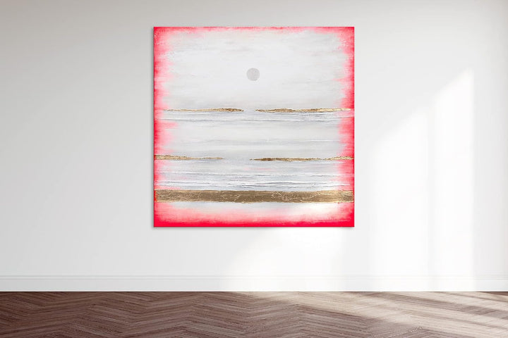 - Handgemaltes Acryl Gemälde mit Blattgold auf Leinwand, YS-Art "Traum" 100 × 100cm. In hellen Farben gemalt und mit Blattgold veredelt.