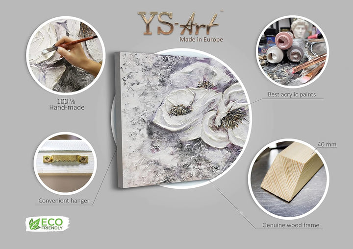 - Jedes Acrylgemälde auf Leinwand aus unserer YS Art Premium Serie wird vom Künstler signiert und ein Echtheitszertifikat wird beigelegt. Bei uns wird noch alles noch per Hand gemacht. Vom Anfertigen eines Keilrahmens, über das Spannen der hochwertigen
