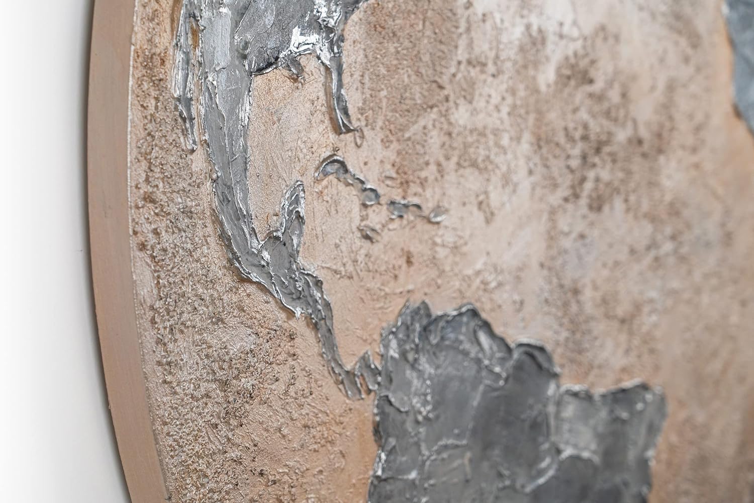 YS-Art Abstrakt Fluoreszierendes leuchtendes Acryl 3D Gemälde auf runder Leinwand Silberner Planet h