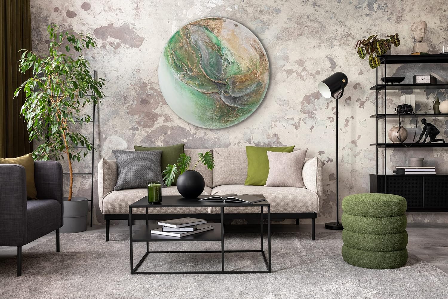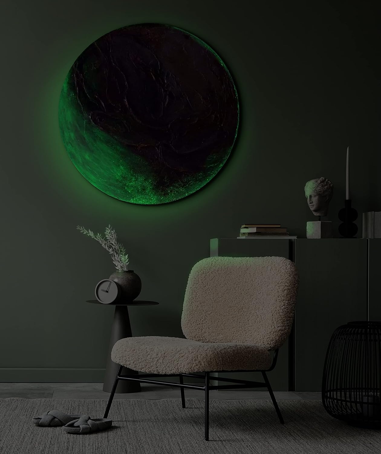 YS-Art Abstrakt Fluoreszierendes leuchtendes Acryl 3D Gemälde auf runder Leinwand Uranus handgemalt