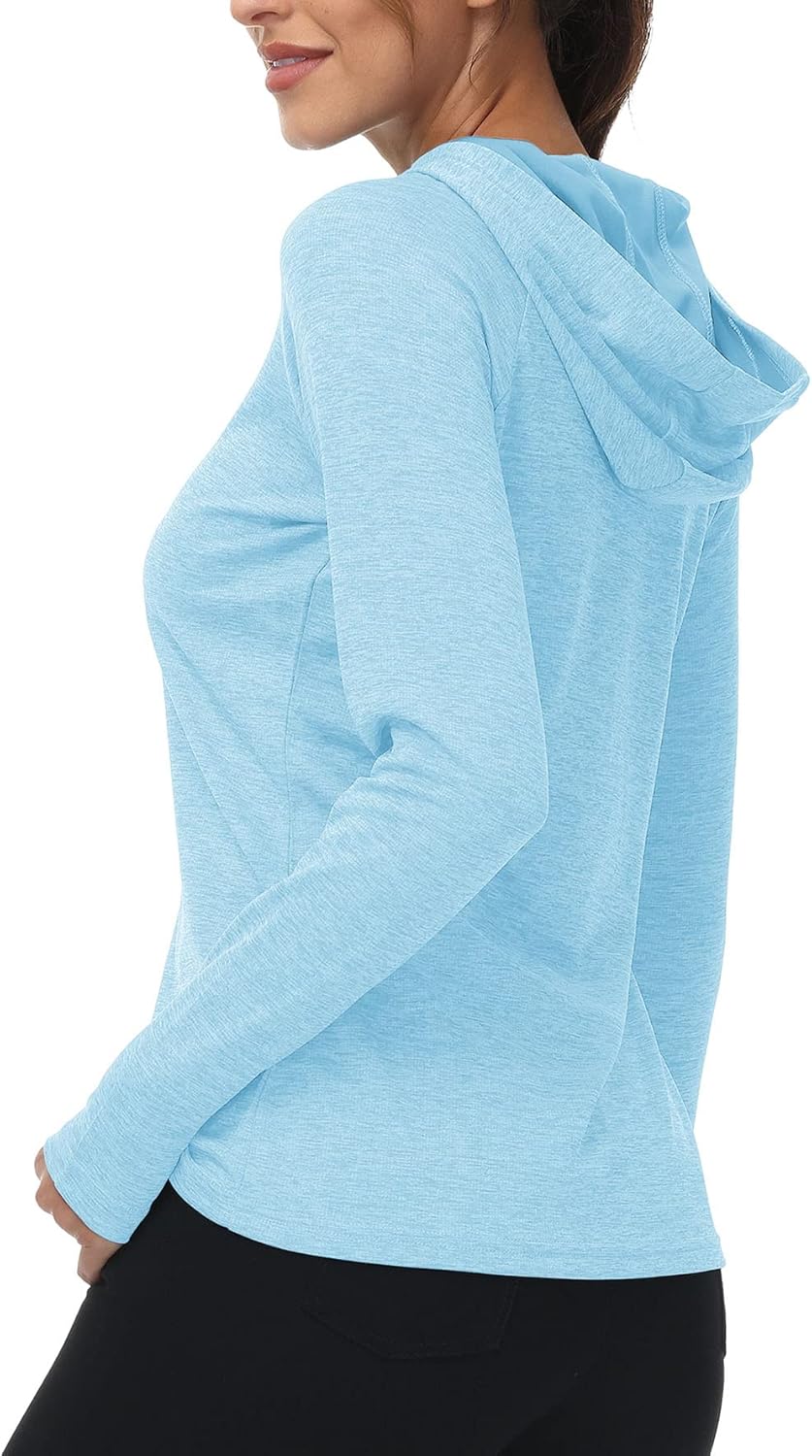 - √ Diese Hoodie Langarm Laufshirt mit Kapuze schützen Ihren Hals an heissen Sommertagen vor Sonnenbrand. Langarm mit Daumenlöchern Design, das die Ärmel an Ort und Stelle hält und mehr abgedeckte Bereiche und zuverlässigen Sonnenschutz für Ihre