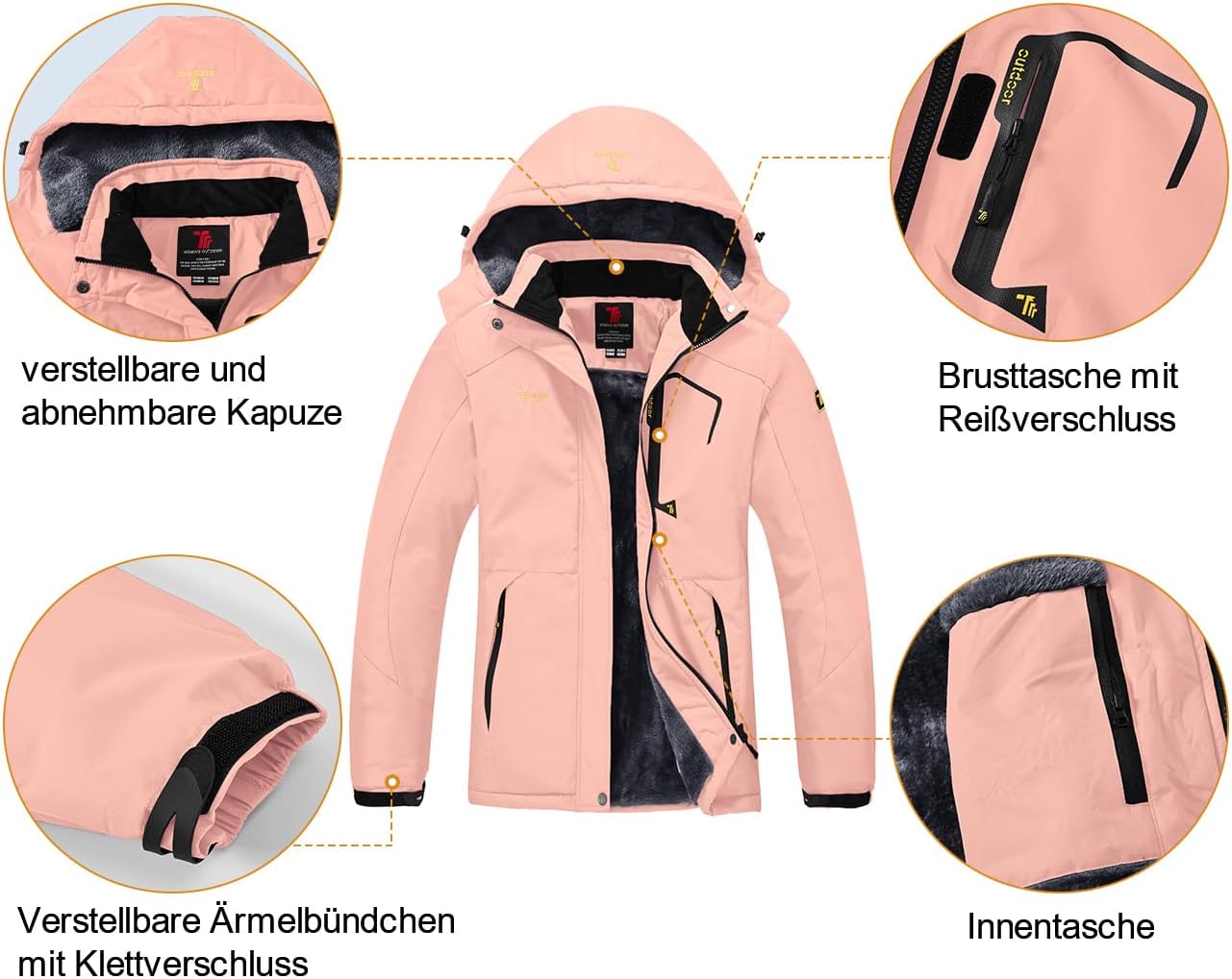 YSENTO Damen Winterjacke Wasserdicht Skijacke Outdoor Softshelljacke Warm Fleecejacke Funktionsjacke