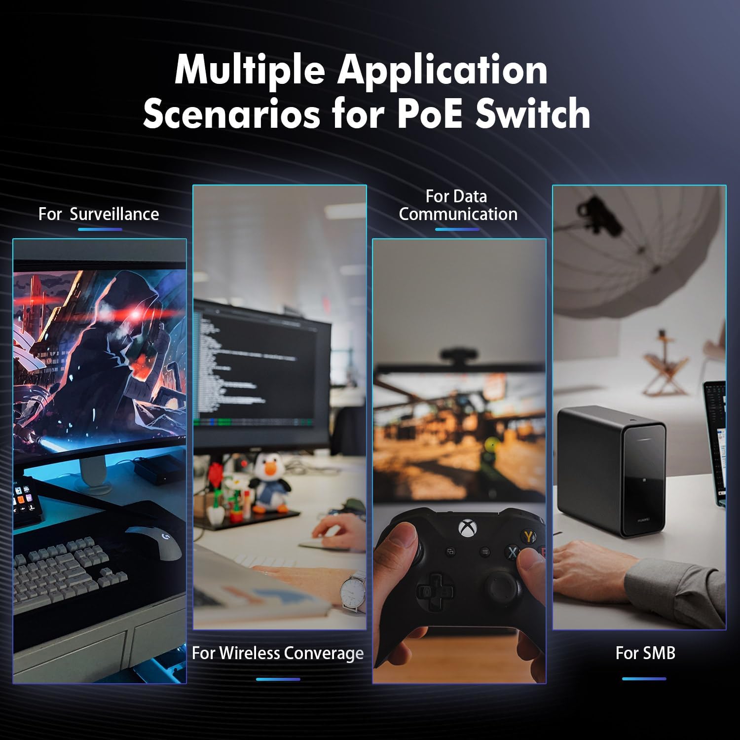 - Unmanaged Network Switch: Unterstützt die automatische Erkennung der Stromversorgung für POE-Geräte, Port Auto-Negotiation, integriertes Strommodul, schliessen Sie einfach das Netzkabel an und verbinden Sie das Gerät über das Netzwerkkabel, es ist