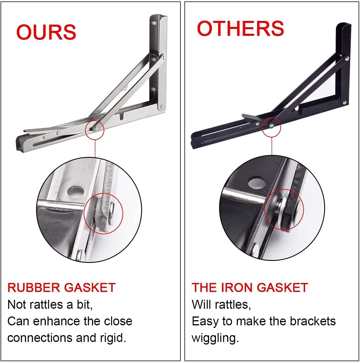 - Robust & Strapazierfähig: Yumore Klappregalhalterung aus hochwertigem Edelstahl, Oberfläche gebürstet, widersteht täglichen Kratzern, Korrosion und Anlaufen gut. Mit solider Dreiecksstruktur und 3,0 mm Stützstangendicke, kann bis zu 330 lb/150 kg