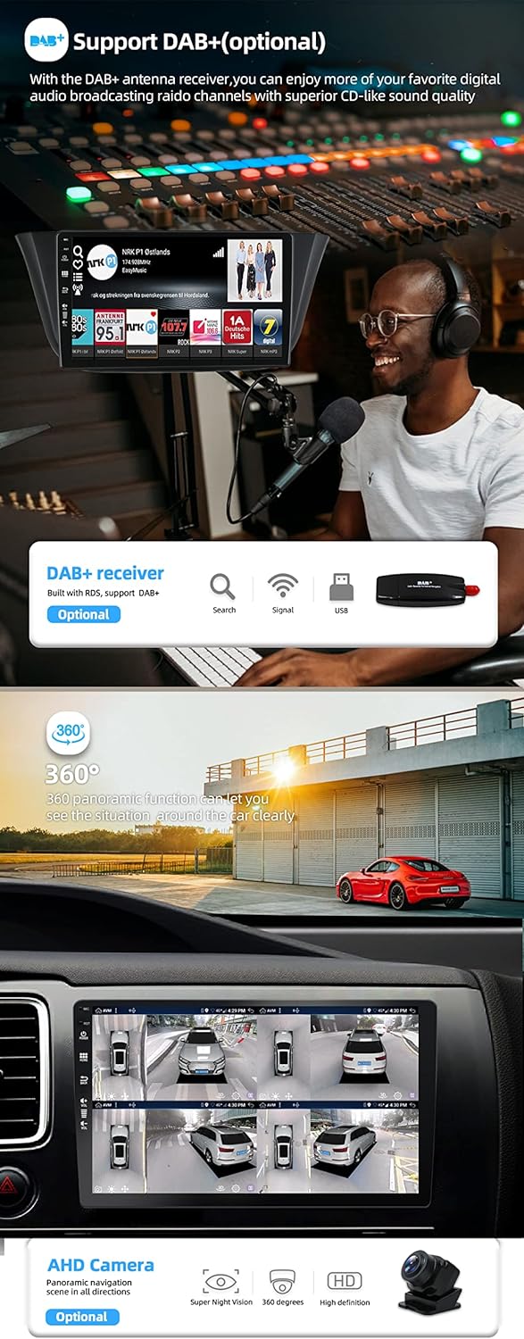 - 【Grosser Funktionsumfang】 Eingebautes WiFi-Internet und unterstützt externes 3G / 4G-Internet (B089KGJT61), Google-Online-Navigationssystem und Offline-Installation der Offline-Karte, OBD-Funktion (OBD2-Adapter erforderlich), Mirror-Link, Radiotuner