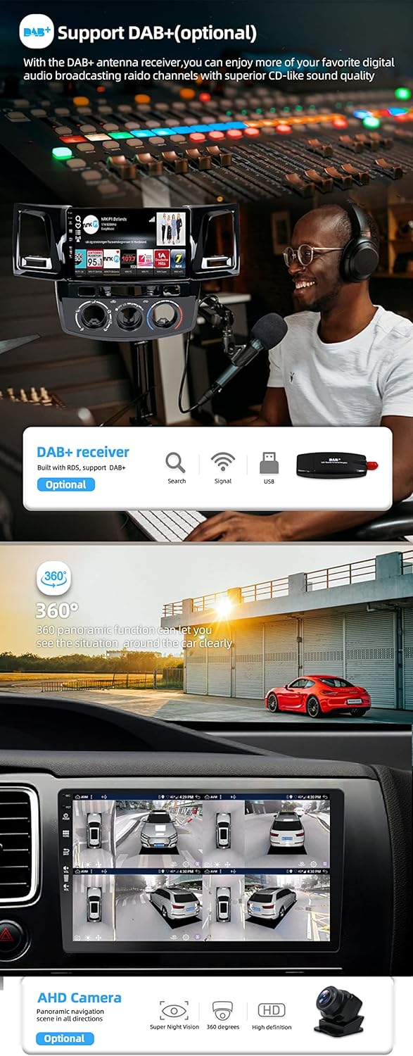 - 【Grosser Funktionsumfang】 Eingebautes WiFi-Internet und unterstützt externes 3G / 4G-Internet (B089KGJT61), Google-Online-Navigationssystem und Offline-Installation der Offline-Karte, OBD-Funktion (OBD2-Adapter erforderlich), Mirror-Link, Radiotuner