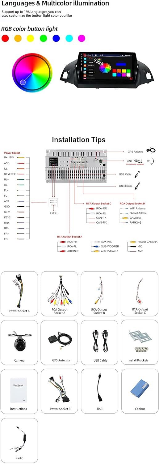 • 【KOMPATIBILITÄT】 Autoradio kompatibel mit Ford Kuga (2013-2017) .Bitte überprüfen Sie die Abmessungen vor dem Kauf. Wenn Sie sich nicht sicher sind, kontaktieren Sie uns bitte mit dem Foto des Dashboards: yuntx_techsupport@163.com