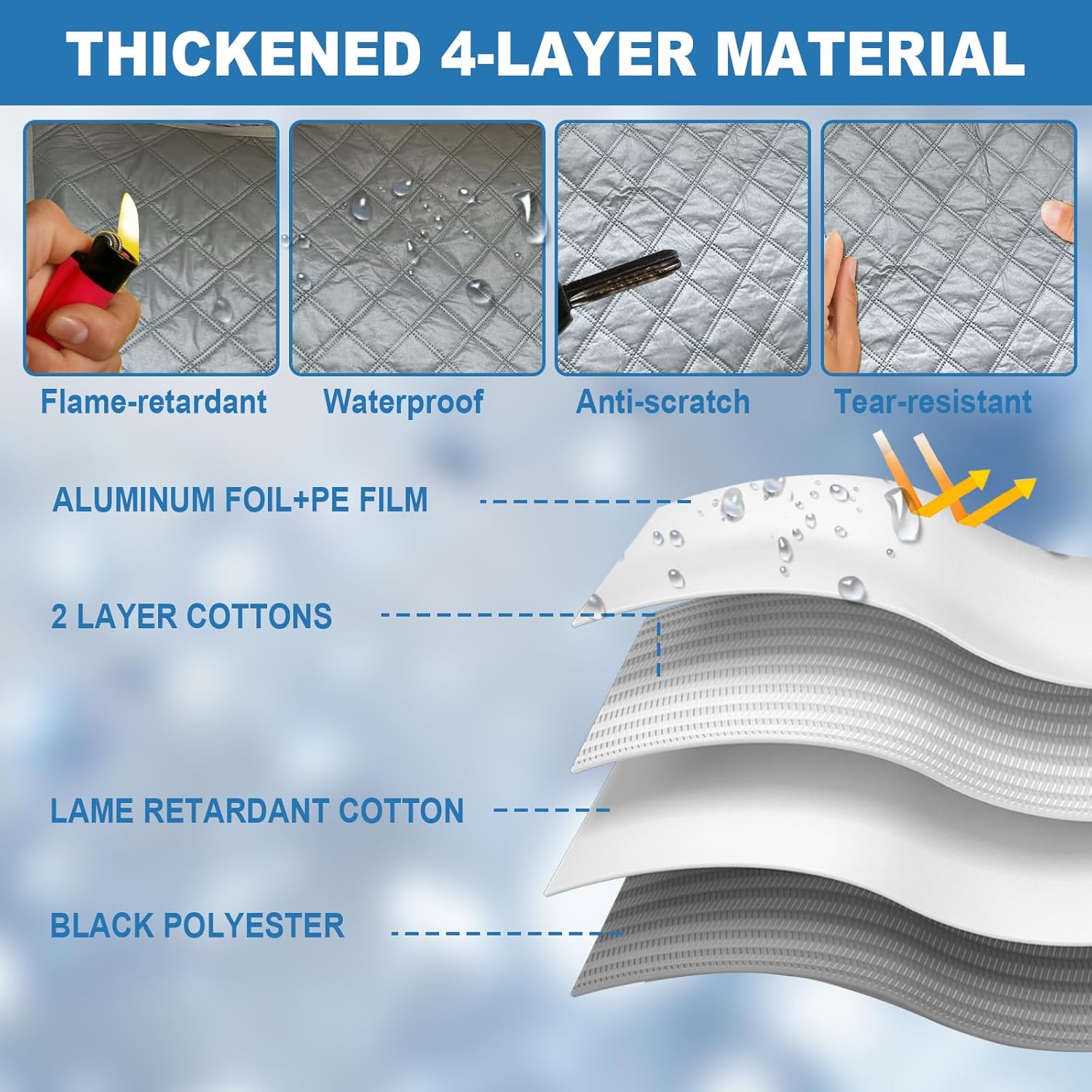 - Premium-Material: aus innerer Baumwolle und Aluminiumfolie, die Mitte ist Baumwolle und die Aussenseite aus reflektierender silberfarbener Aluminiumfolie für konstante Temperatur. Die externe thermische Windschutzscheibenabdeckung ist wasserdicht und