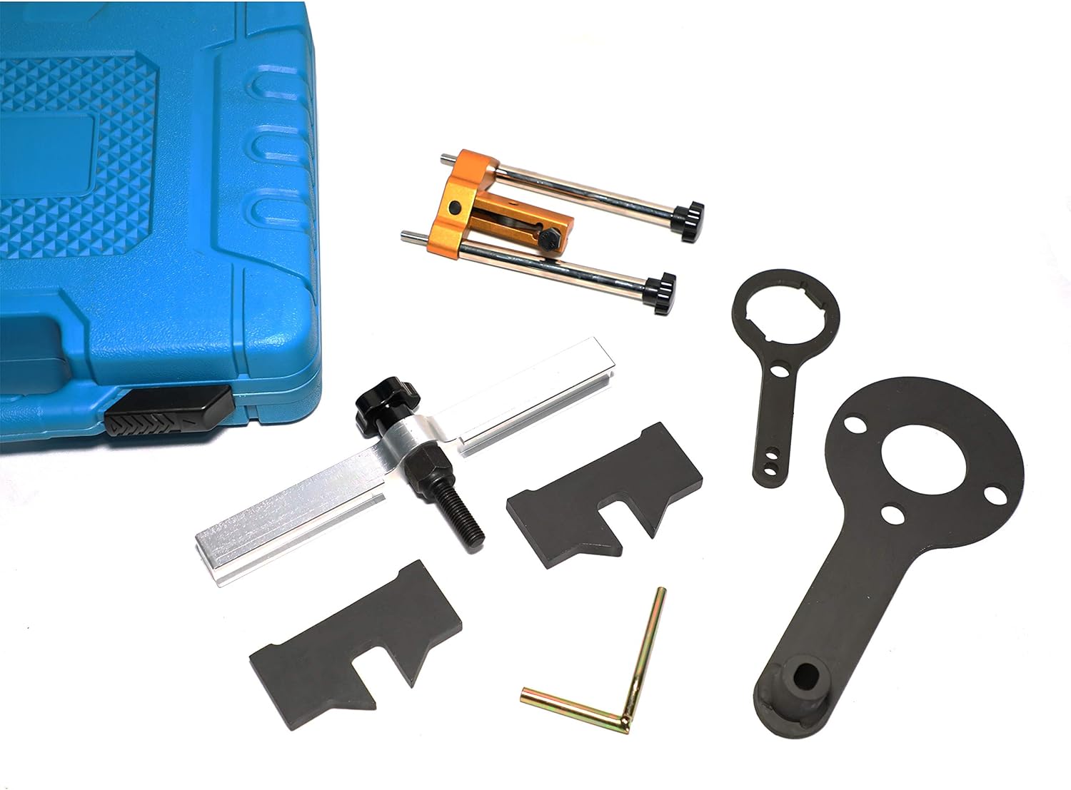 - Kombinations-Set: Dieses Set enthält zwei Nockenwellen-Ausrichtungsvorrichtungen, Kettenversteller, Kurbelwellen-Befestigungswerkzeug, die Nockenwellen-Ausrichtungsvorrichtungen sind einfach zu bedienen und der Kettenversteller kann die Kettenspannung