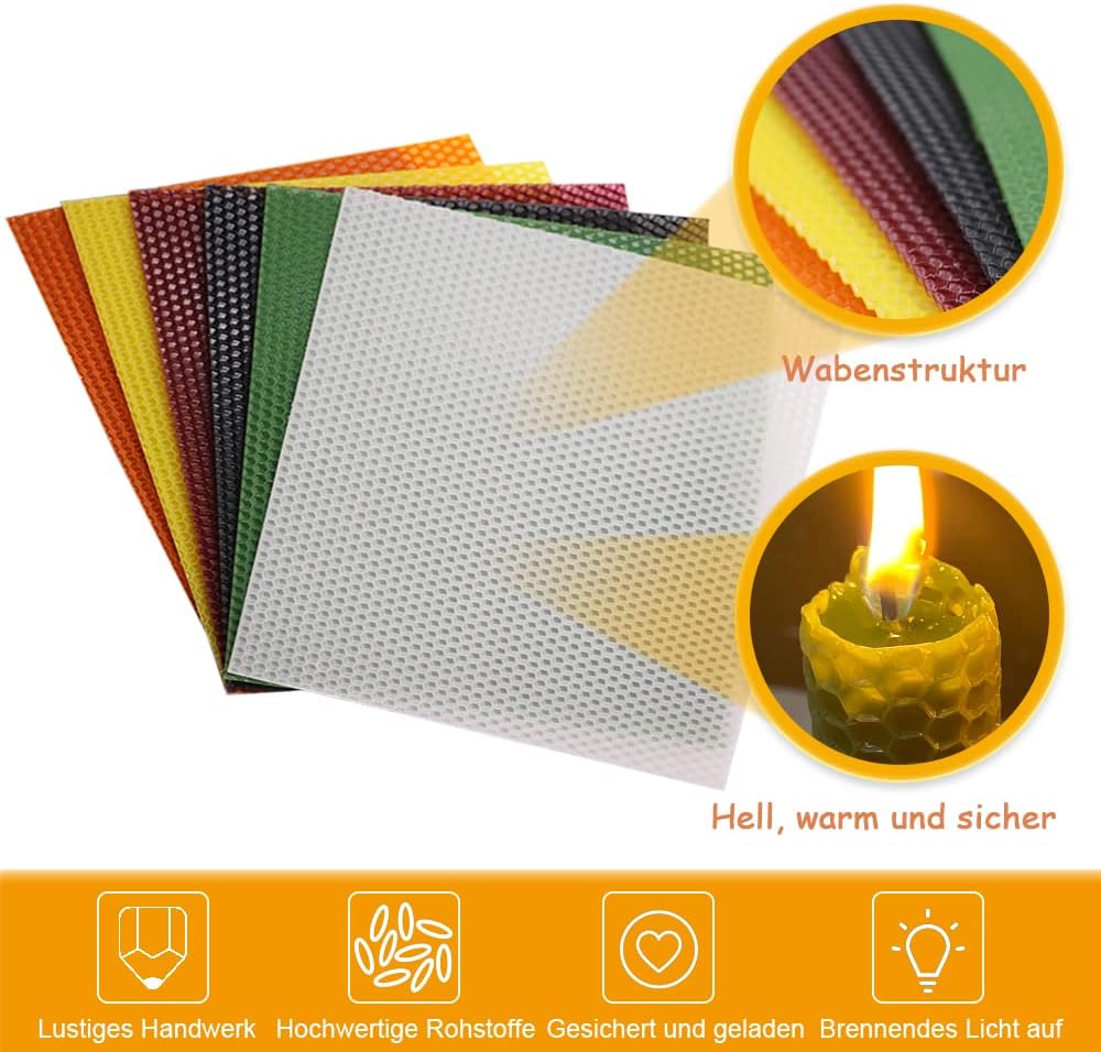 - Bienenwachs kerzen bastelset Making Kit für Kinder. Bienenwachs Kerzen Kit enthält 12-helle Farben "8 x 8"-Zoll Stücke von natürlichen Bienenwachs Blätter und andere Kerzen Herstellung Zubehör: 177 Zoll Baumwolldocht und einfach zu befolgende