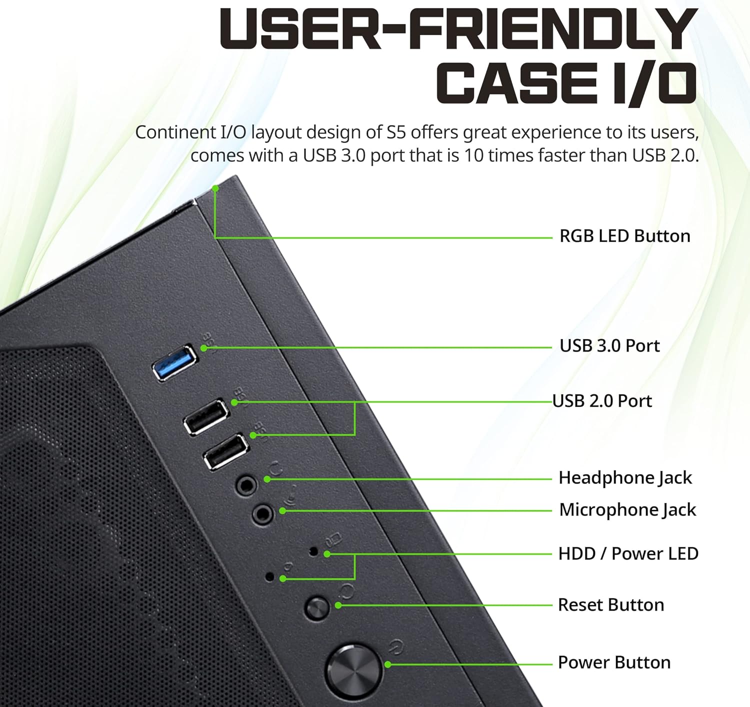 - GAMING PC GEHÄUSE MIT LÜFTER; Kühlt schnell die Wärme im Inneren des Systems mit dem vorinstallierten 48-mm-RGB-Fan und dem normalen Lüfter