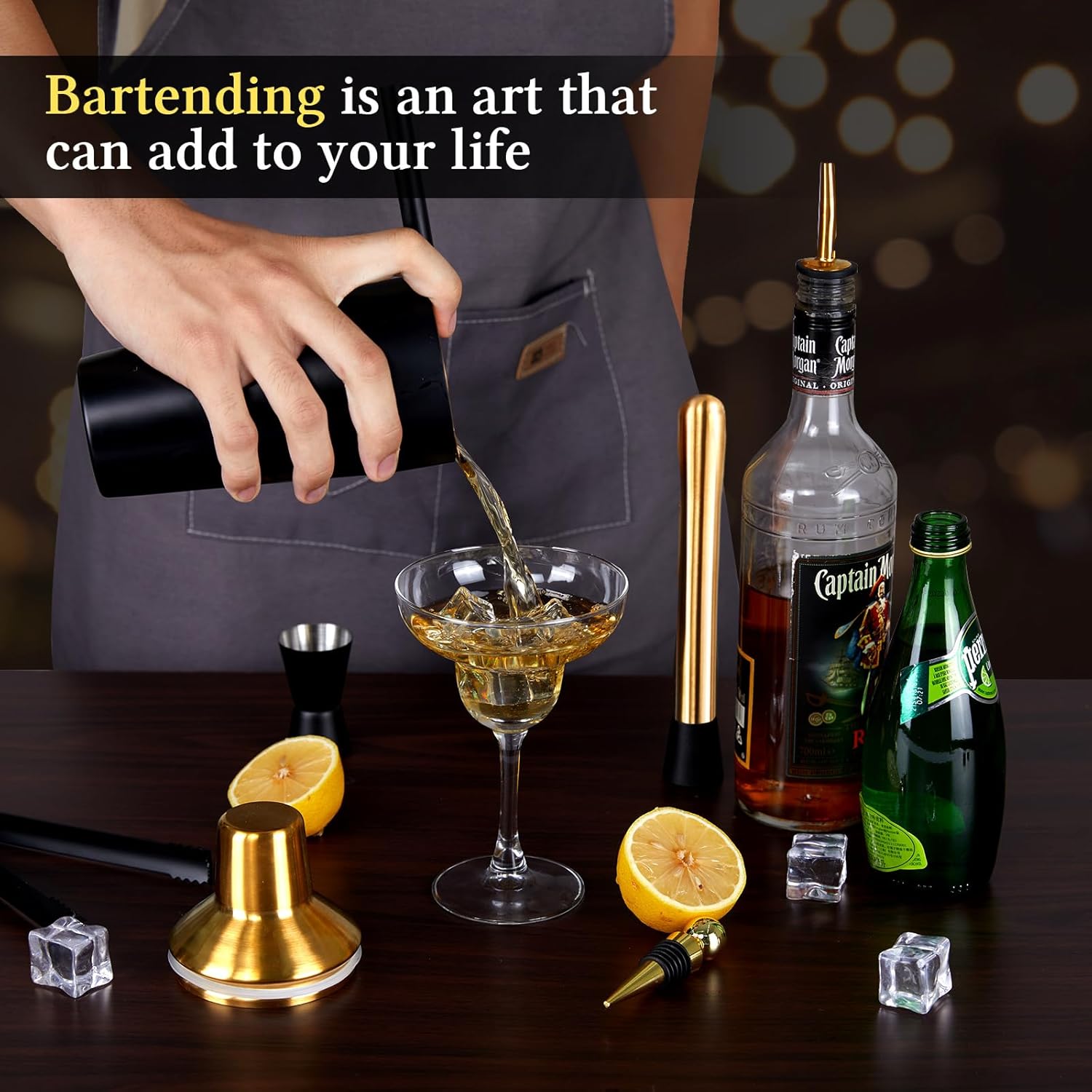 - Professionelle Barausrüstung: Dieses coktailshakerset enthält alles, was ein angehender Barkeeper braucht, um den perfekten Cocktail zuzubereiten. Hochwertige Edelstahlwerkzeuge wie Shaker, Messbecher, Cocktailstössel, Eiszange, Rührlöffel,