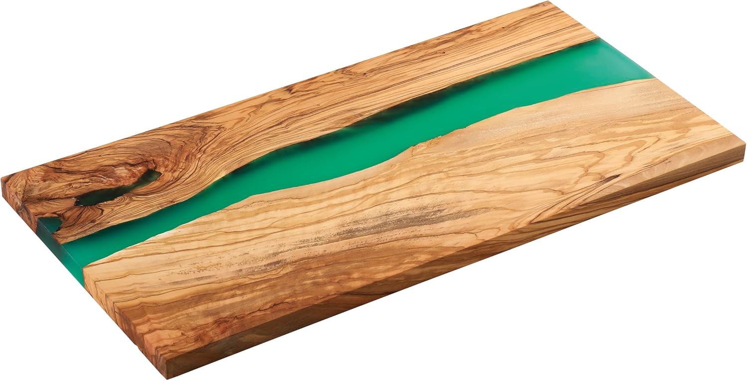 - BESTE MATERIALIEN - Hergestellt aus robustem Olivenholz und geziert mit hochwertigem Harz, bietet das Brett nicht nur eine langanhaltende Beständigkeit, sondern auch eine einzigartige Maserung und Farbe.