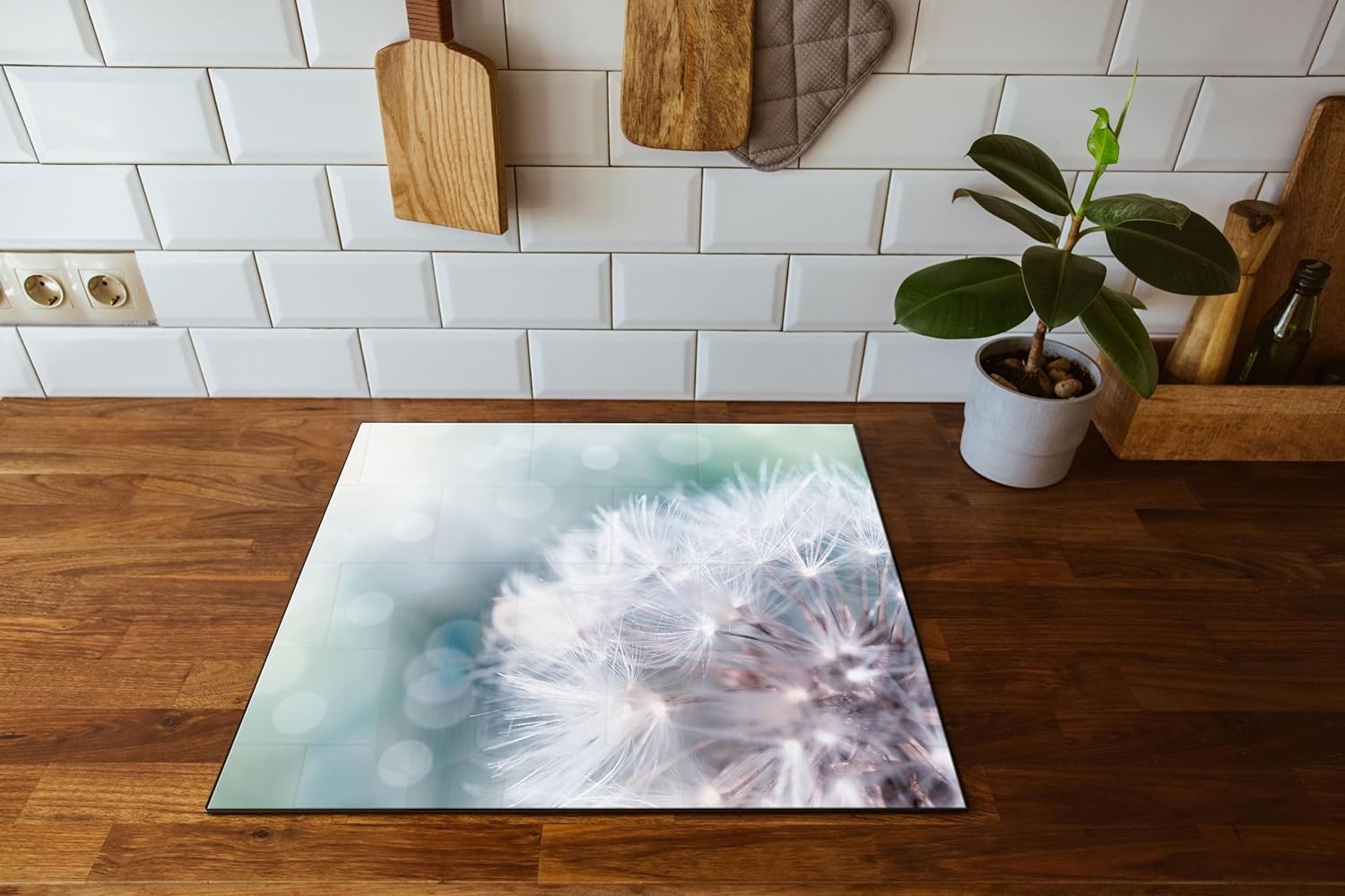 Zauberhafte Pusteblume Herdabdeckplatte & Spritzschutz aus Echtglas | Für Herd-Kochfelder | 60x52 cm
