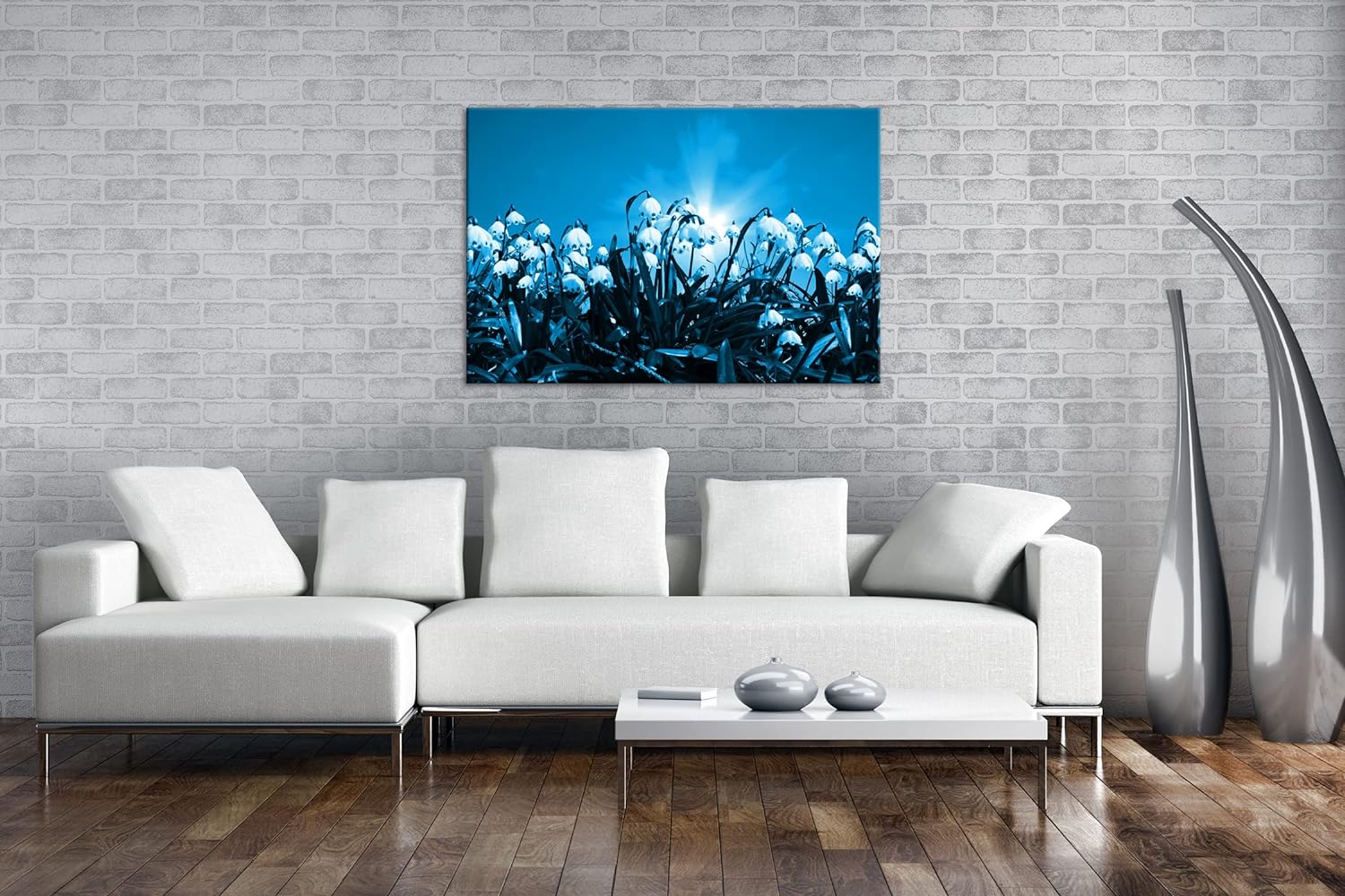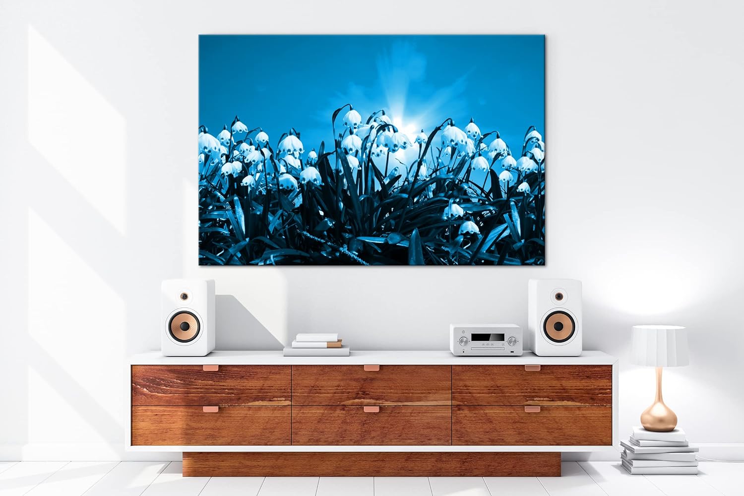 deyoli zauberhafte Schneeglöckchen Format: 80x60 Effekt: Monocrome Blau als Leinwand, Motiv fertig g