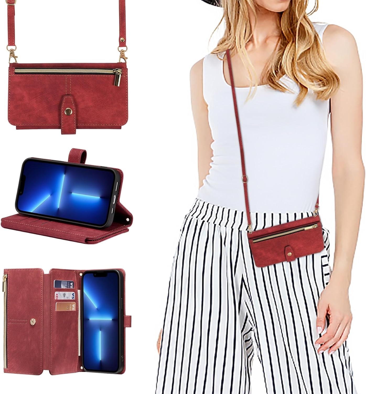 - 【Praktische Handykette】: Die Handyhülle wird mit einer 60-Zoll-Kette geliefert, die eingestellt oder entfernt werden kann, was Ihnen mehr Komfort beim Tragen Ihres Handys bietet.