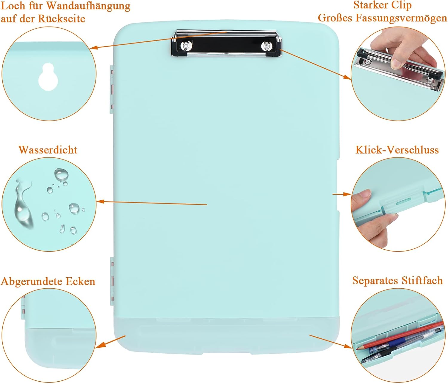 - Vielseitiges Klemmbrett : Multifunktionales Klemmbrett mit Ablagefach und Clip. Das geräumige aufbewahrungsfach kann gut genutzt werden, um Formulare, Dokumente und Schreibutensilien aufzubewahren. Ein kleines separates Fach ermöglicht leichten Zugriff