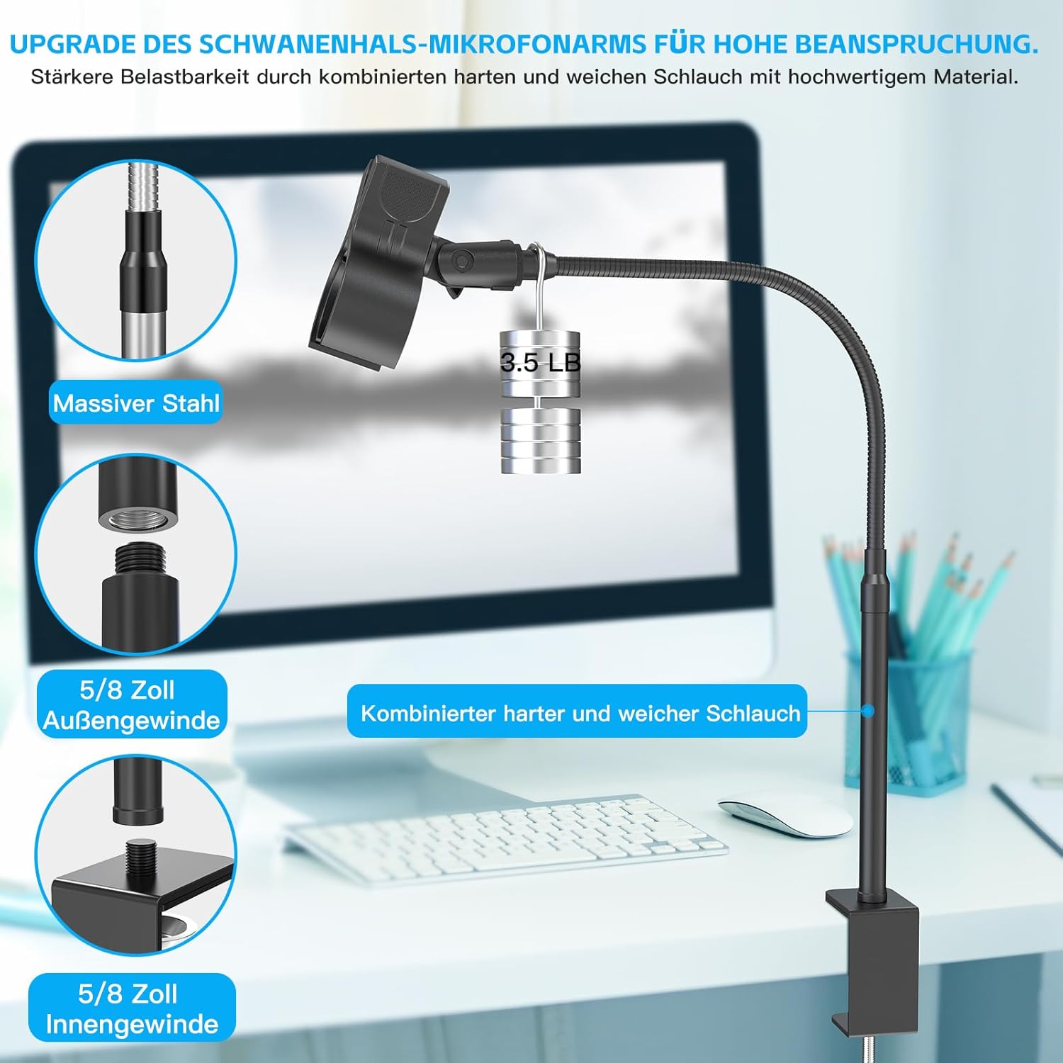 - 【Breite Kompatibilität】 (Tragfähigkeit: 1,6 kg/3,5 lbs) Dieser Mikrofonständer mit einem 19 Zoll langen flexiblen Gänsehalsschwanz-Arm ermöglicht einfache Anpassungen, um die perfekte Mikrofonposition zu finden. Der verbesserte